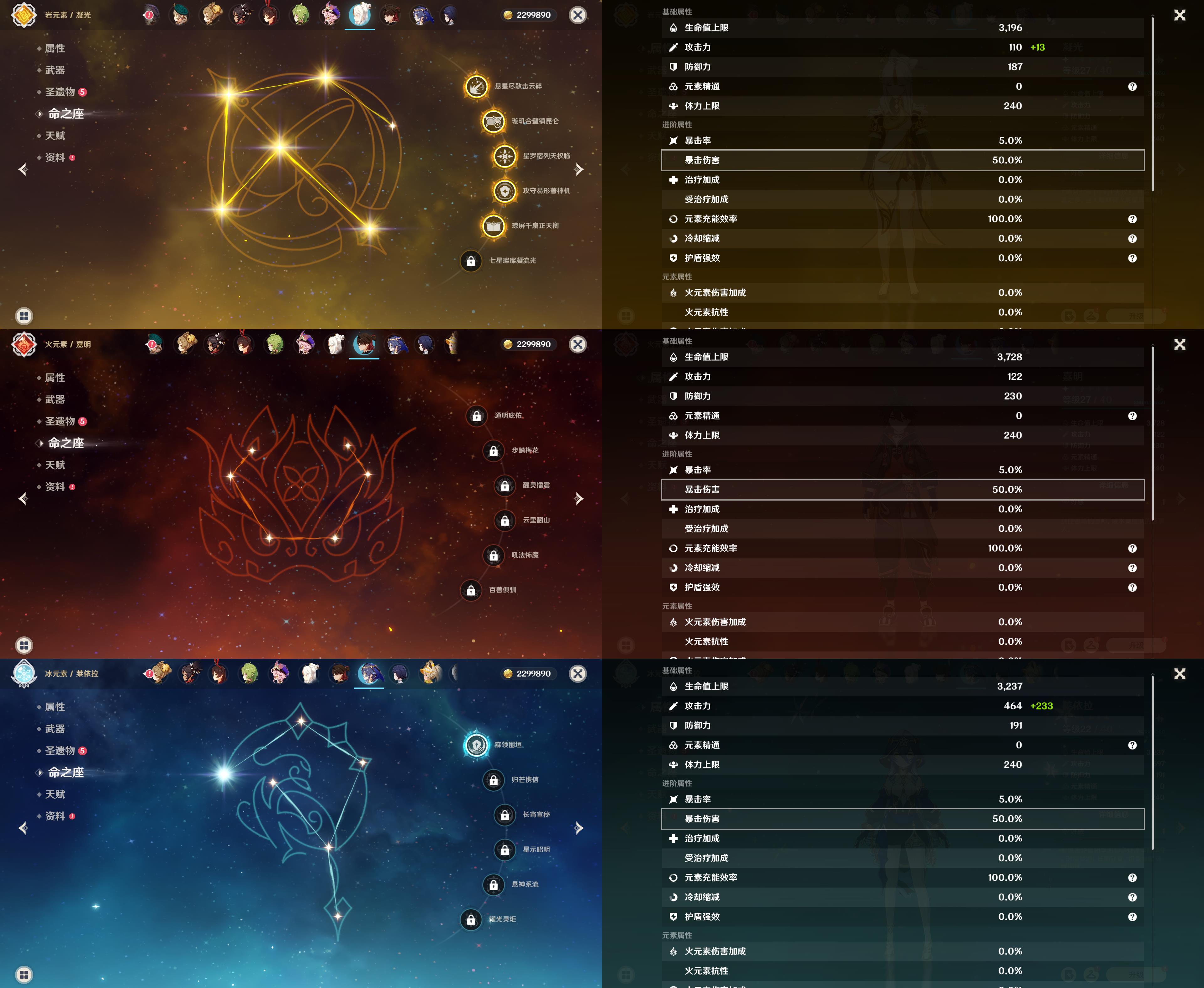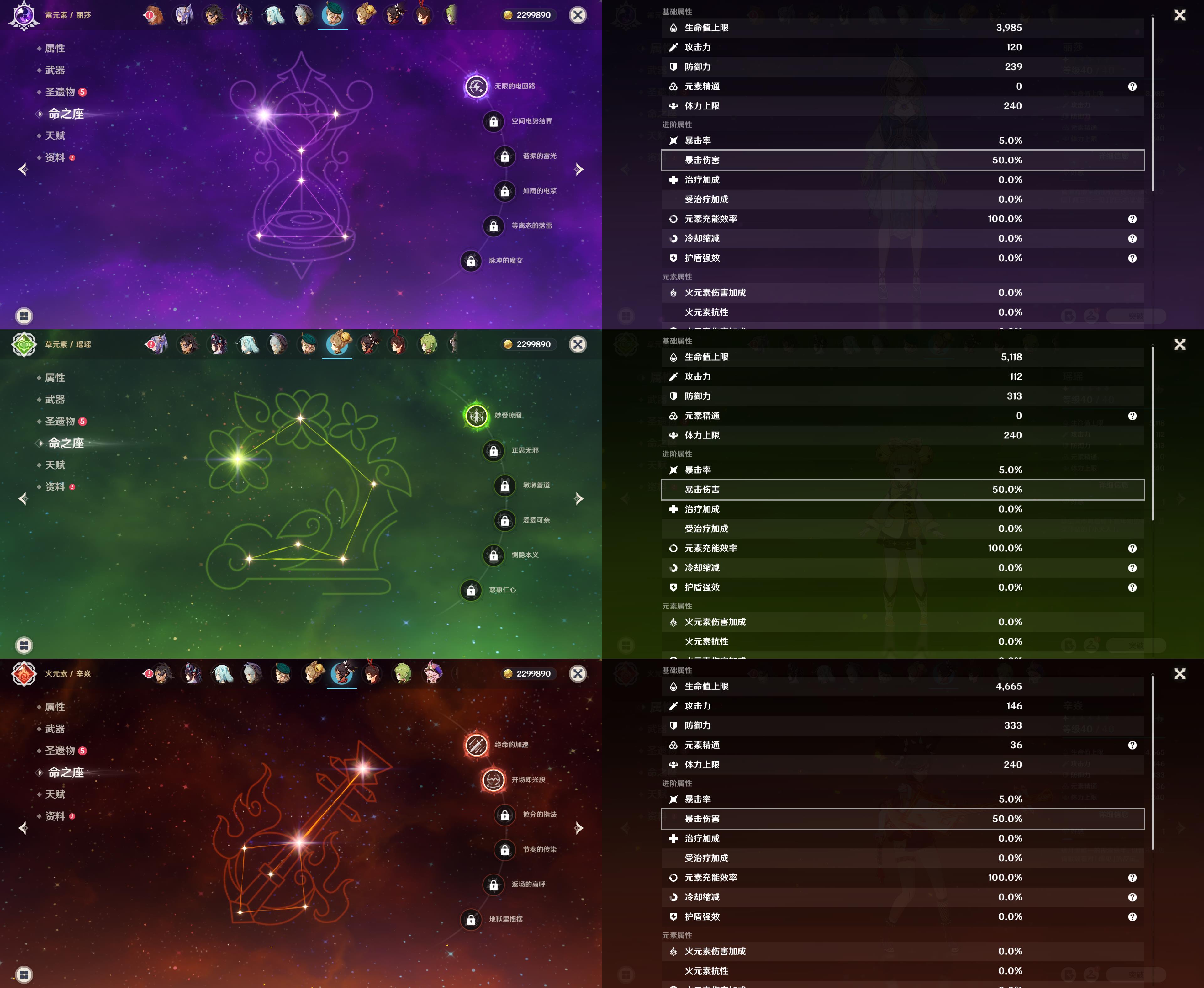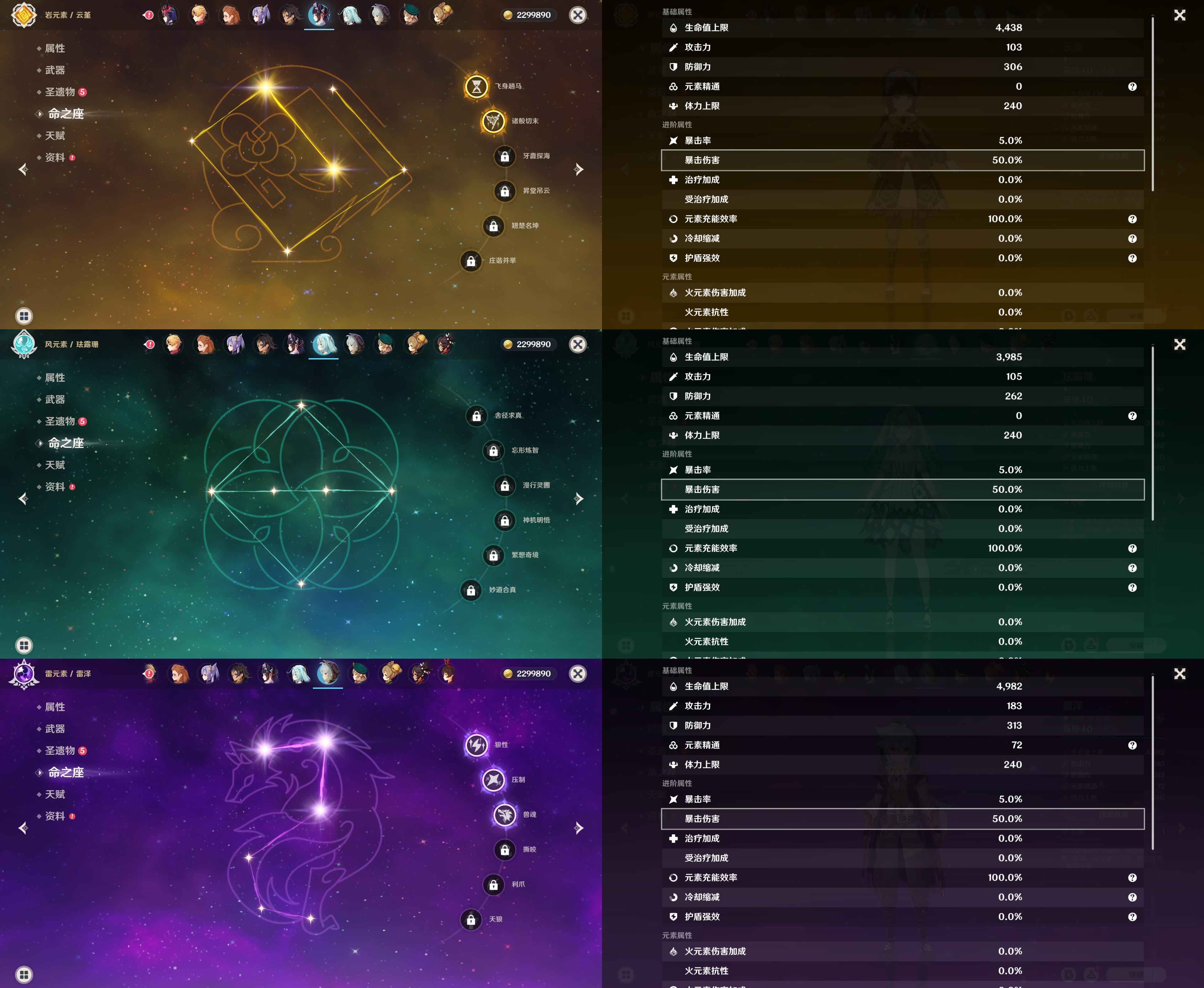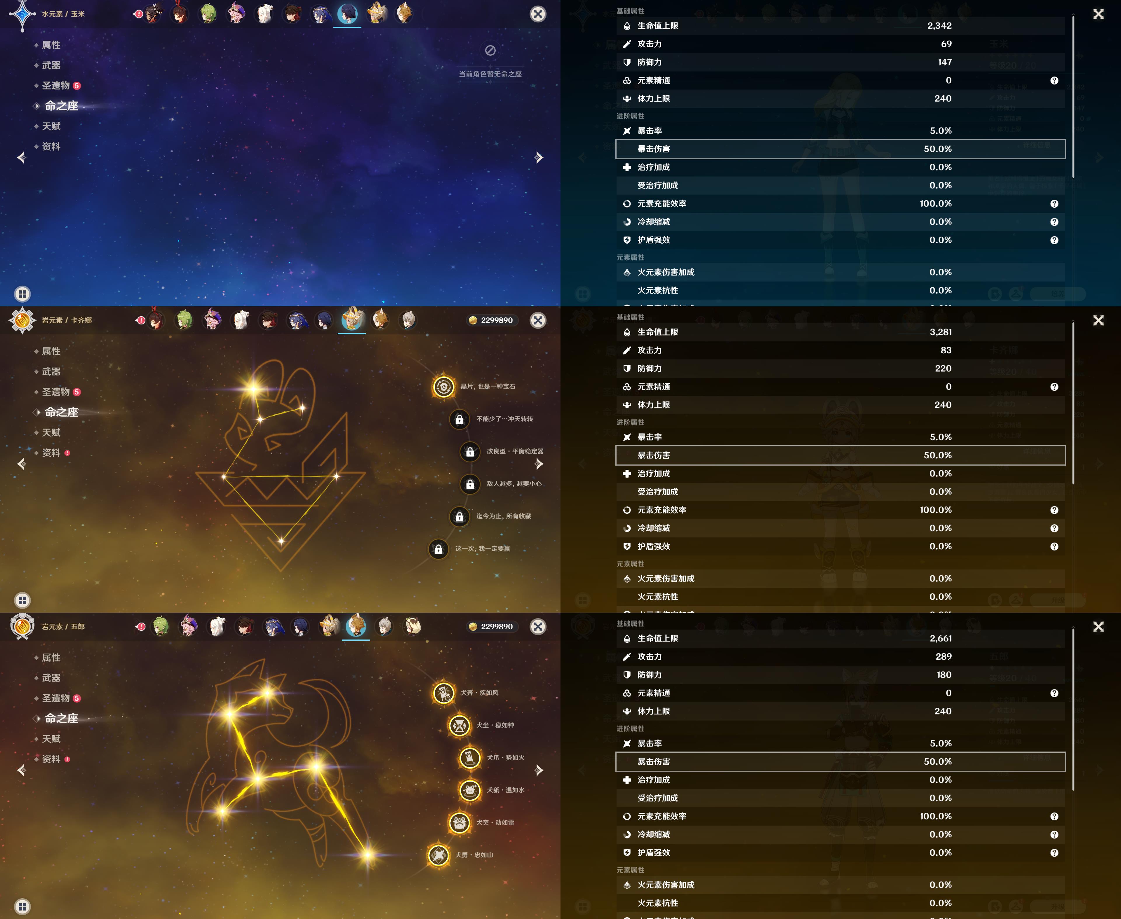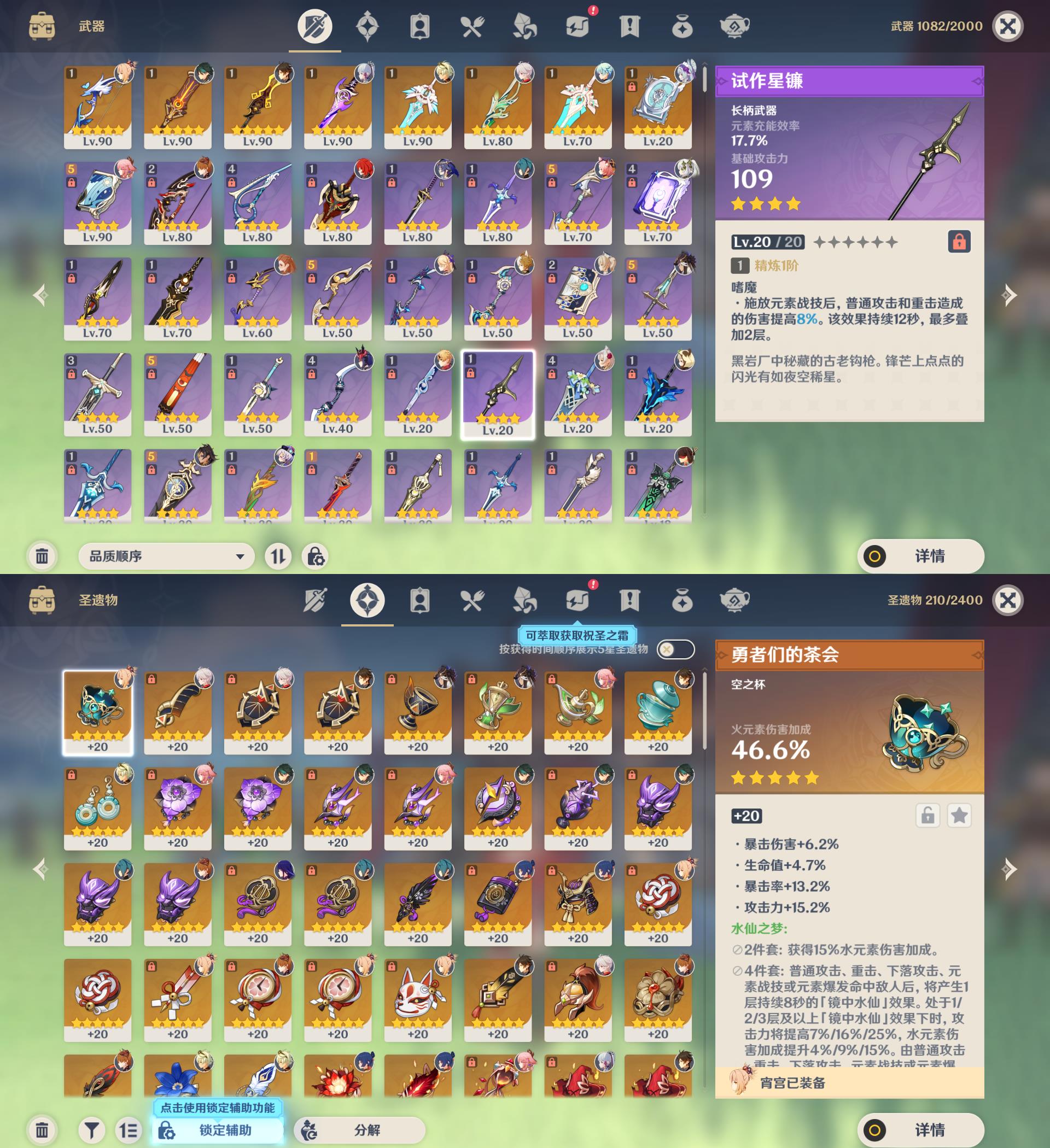 57级/27黄/女主/17个五星角色/8个五星武器/宵宫/钟离