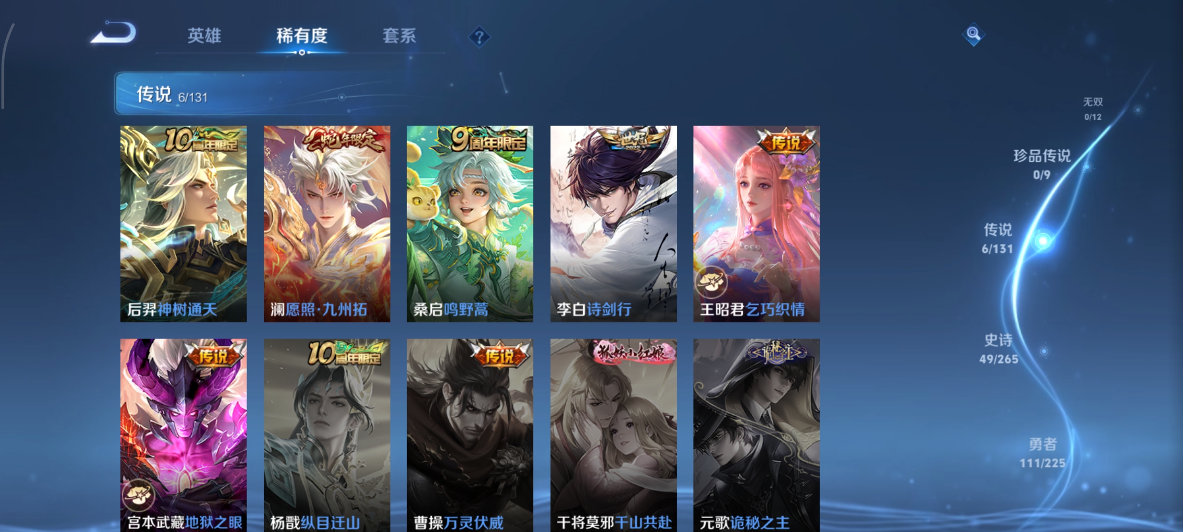 安卓Q-尊贵铂金IV-125英雄-206皮肤-1典藏-6传说-49史诗