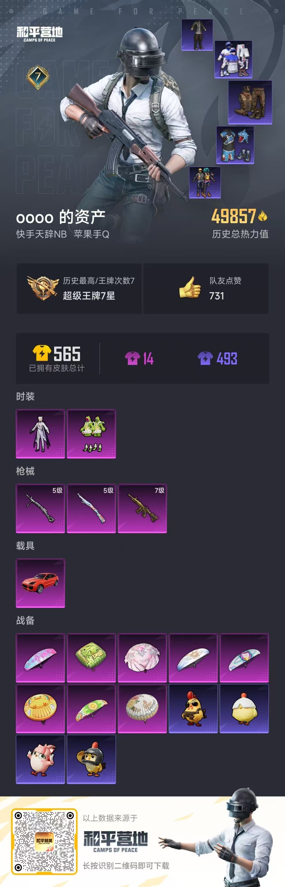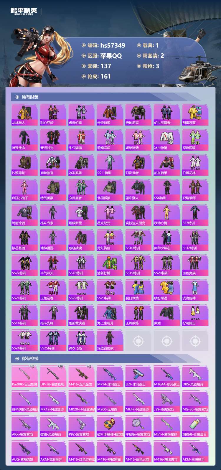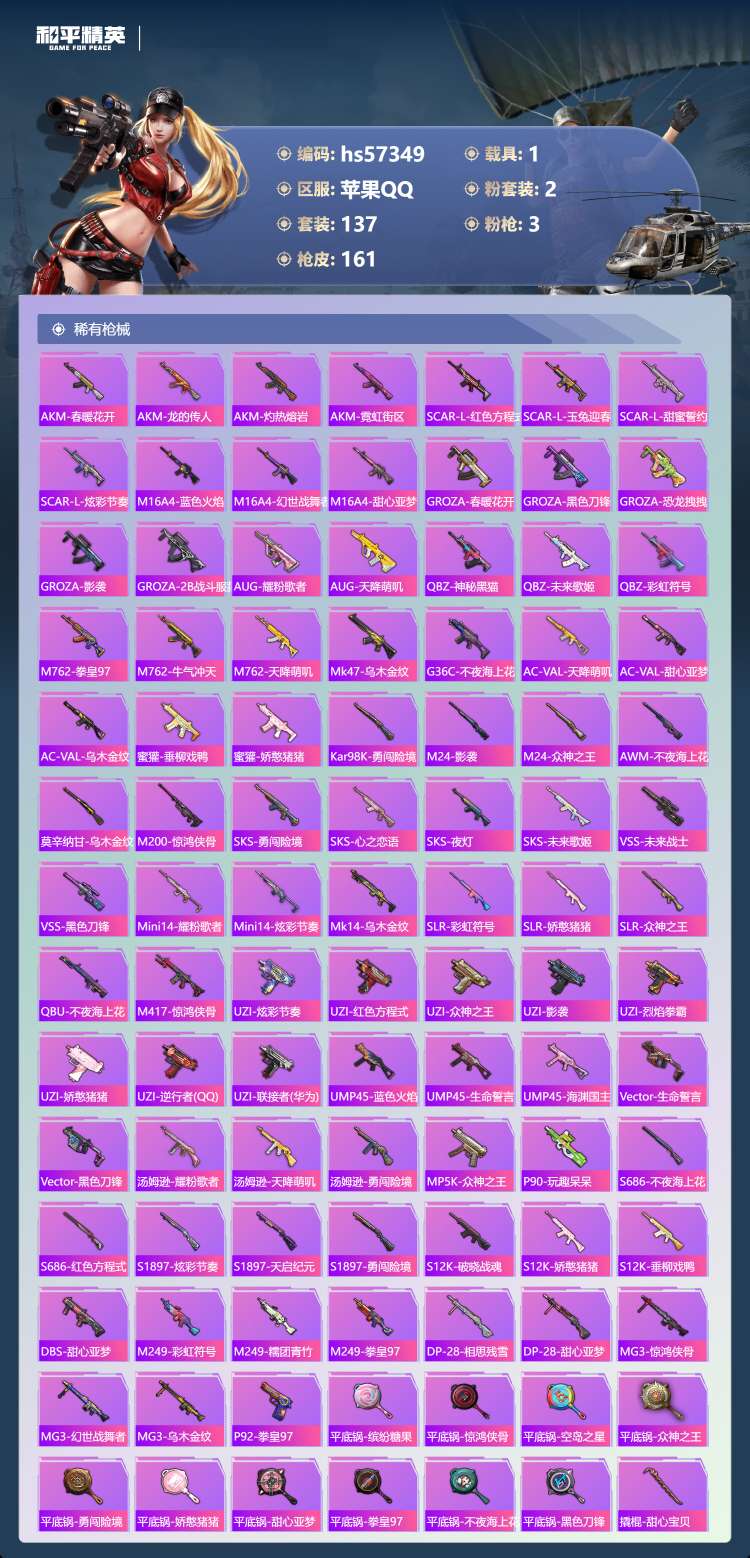 hs57349 苹果手Q-7王牌印记-2粉装-3特效枪-1载具-49857热力值-137套装-161