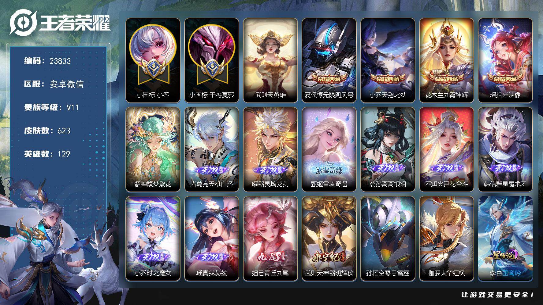 V6 皮肤37 英雄129 至尊星耀 荣耀典藏1 传说4 其他皮肤36