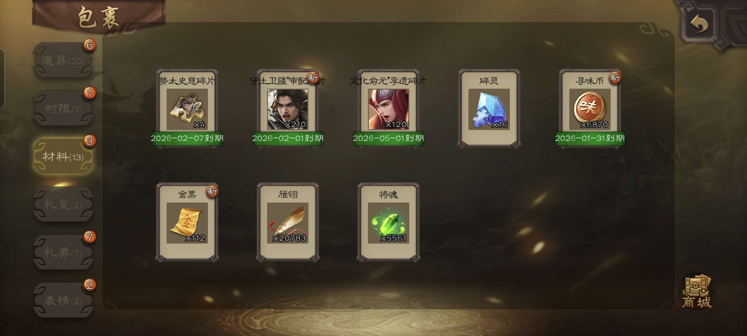 8 史诗武将 5000战魂,2万羽毛,两个半宝珠