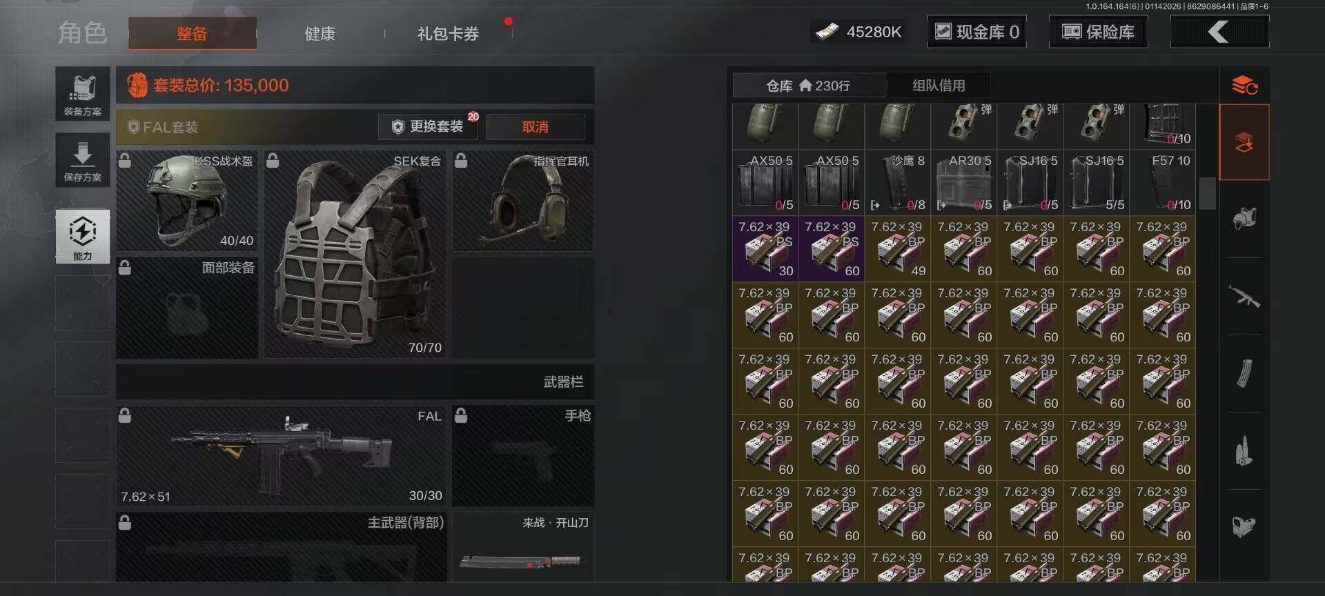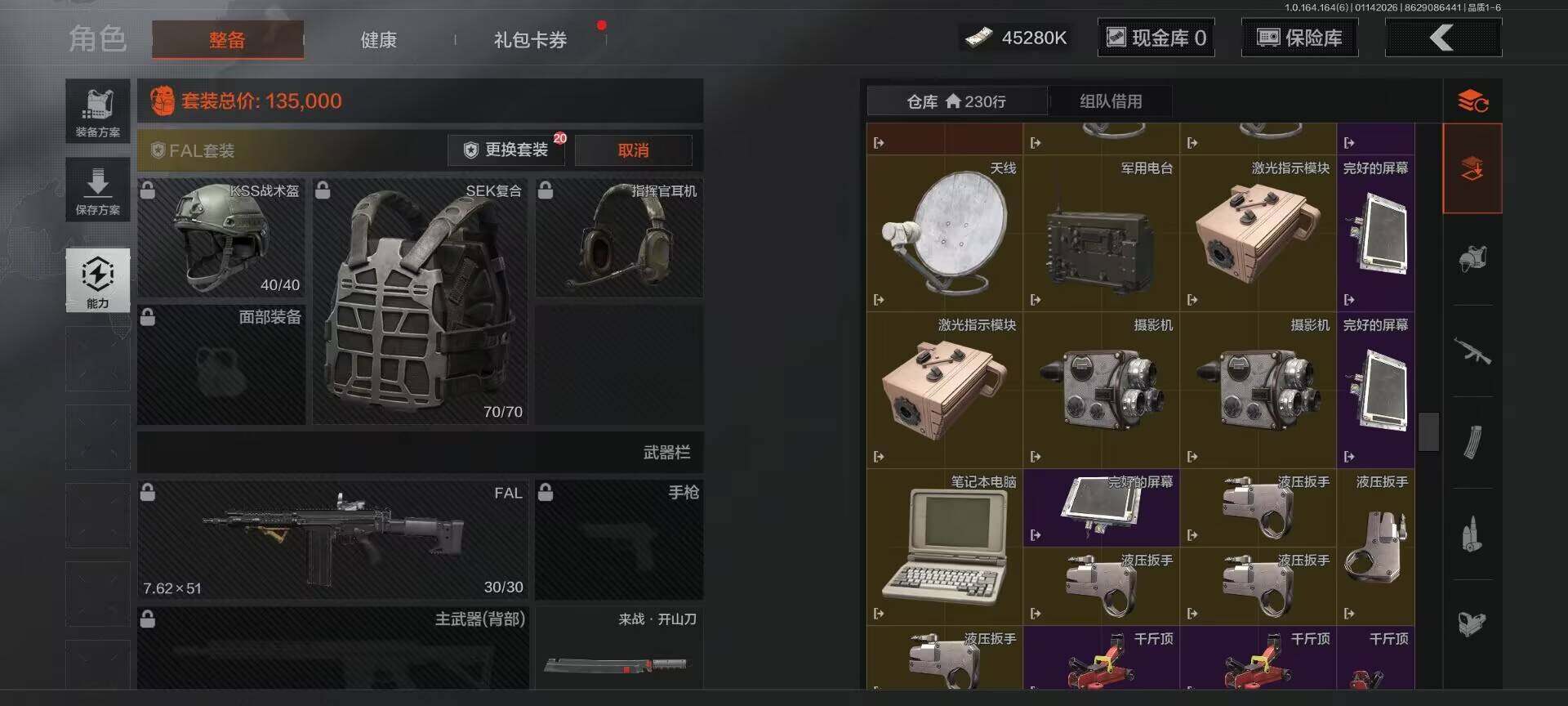 仓库价值(百万):64/柯恩币:45280000/来战开山刀