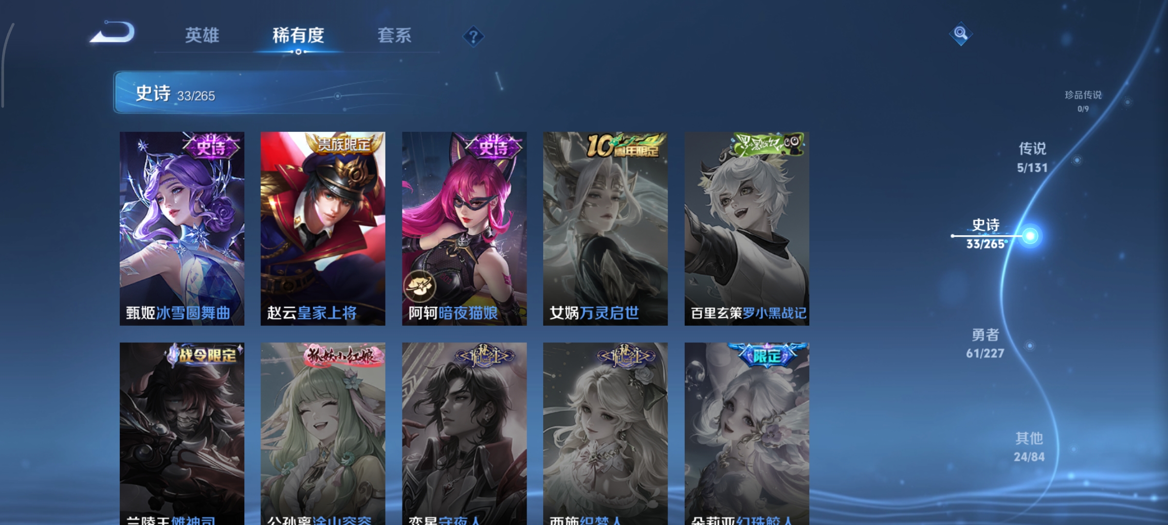 安卓Q-非凡王者-117英雄-124皮肤-1典藏-5传说-33史诗