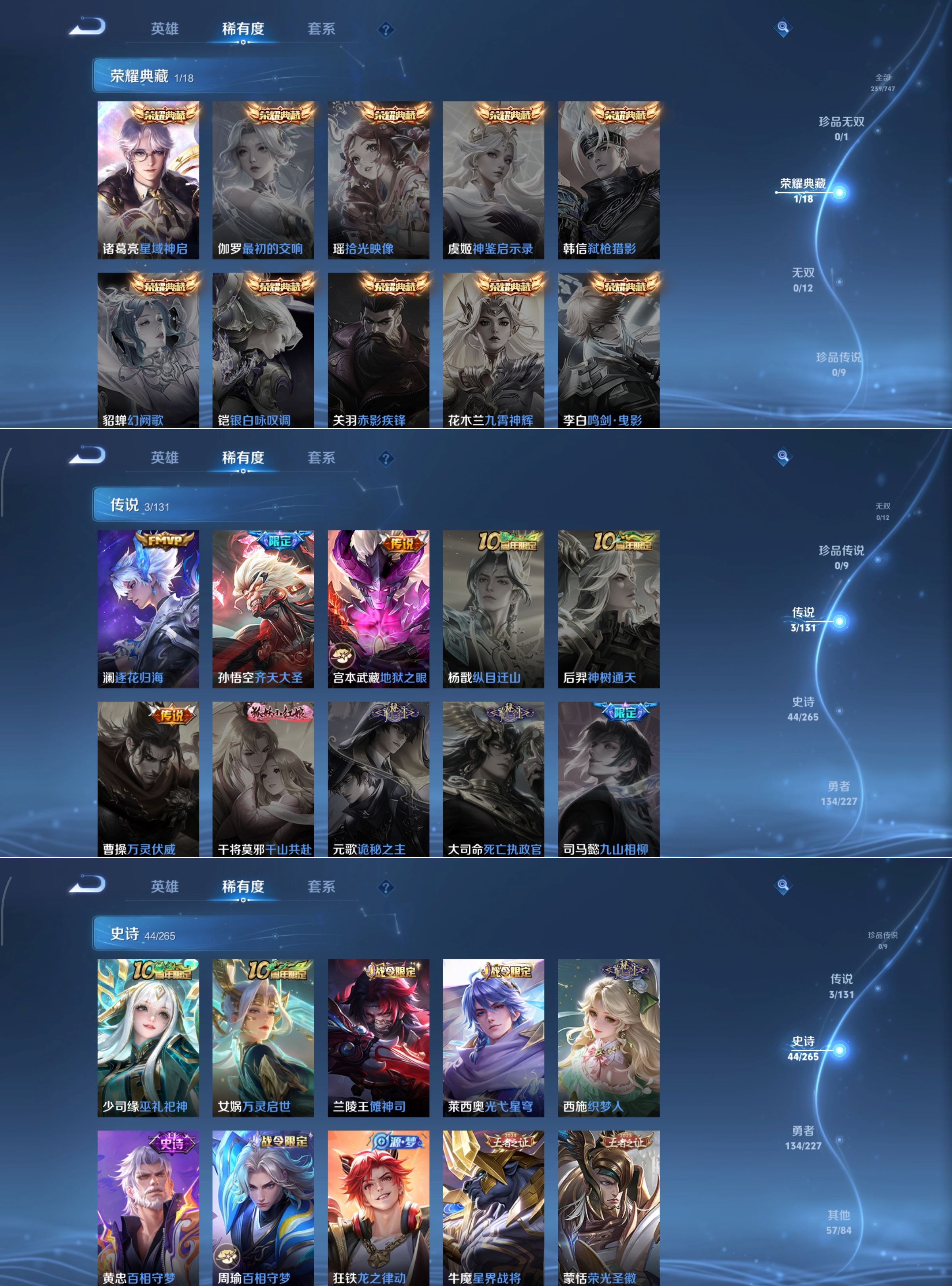 安卓Q-绝世王者-126英雄-239皮肤-1典藏-3传说-44史诗