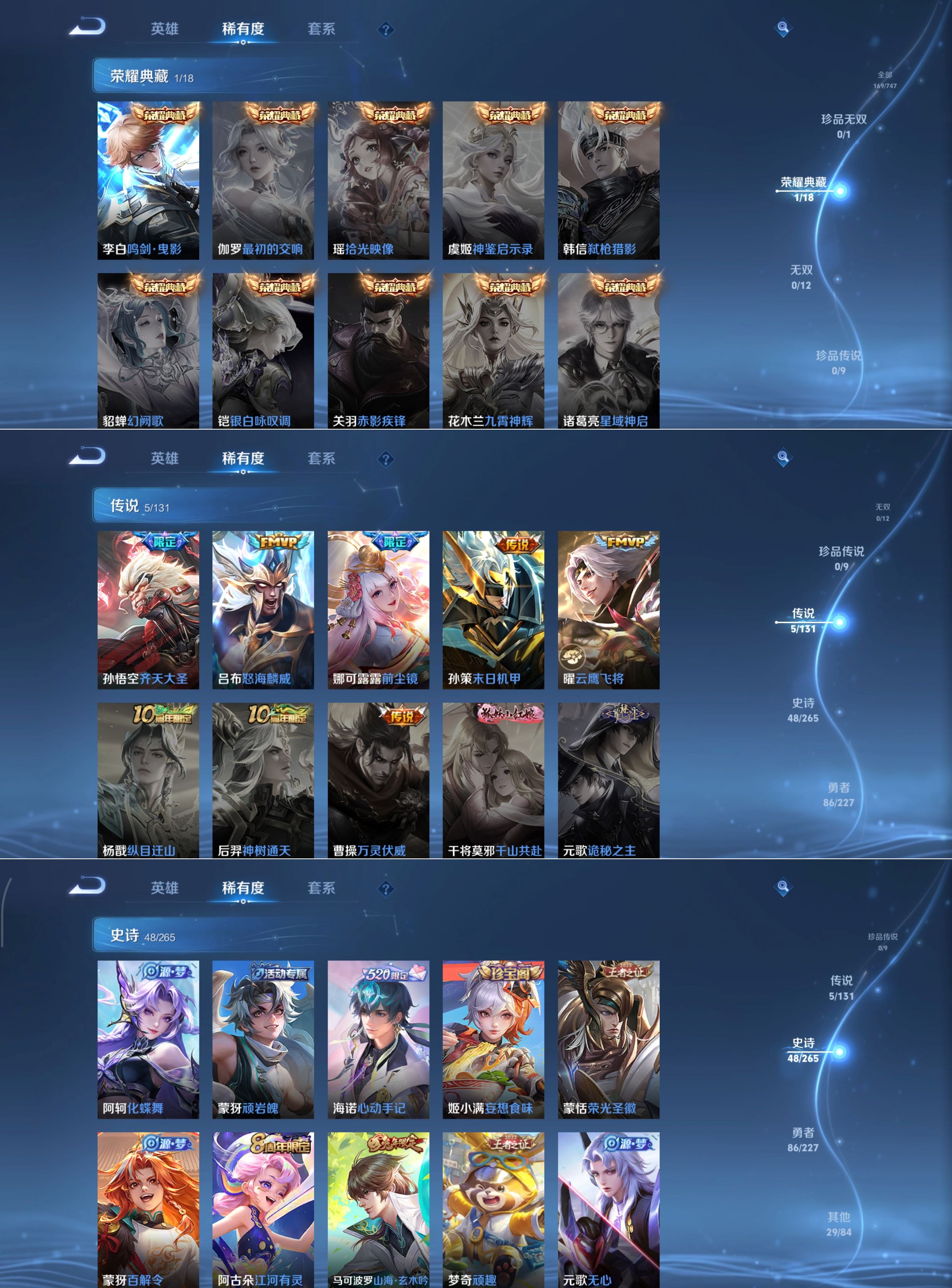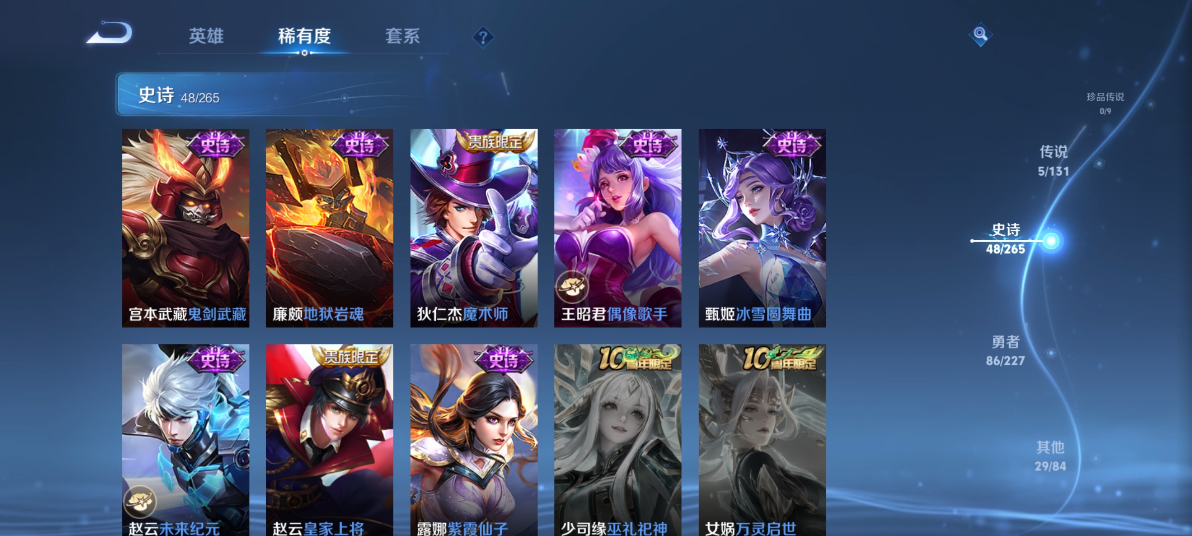 安卓Q-尊贵铂金IV-124英雄-169皮肤-1典藏-5传说-48史诗