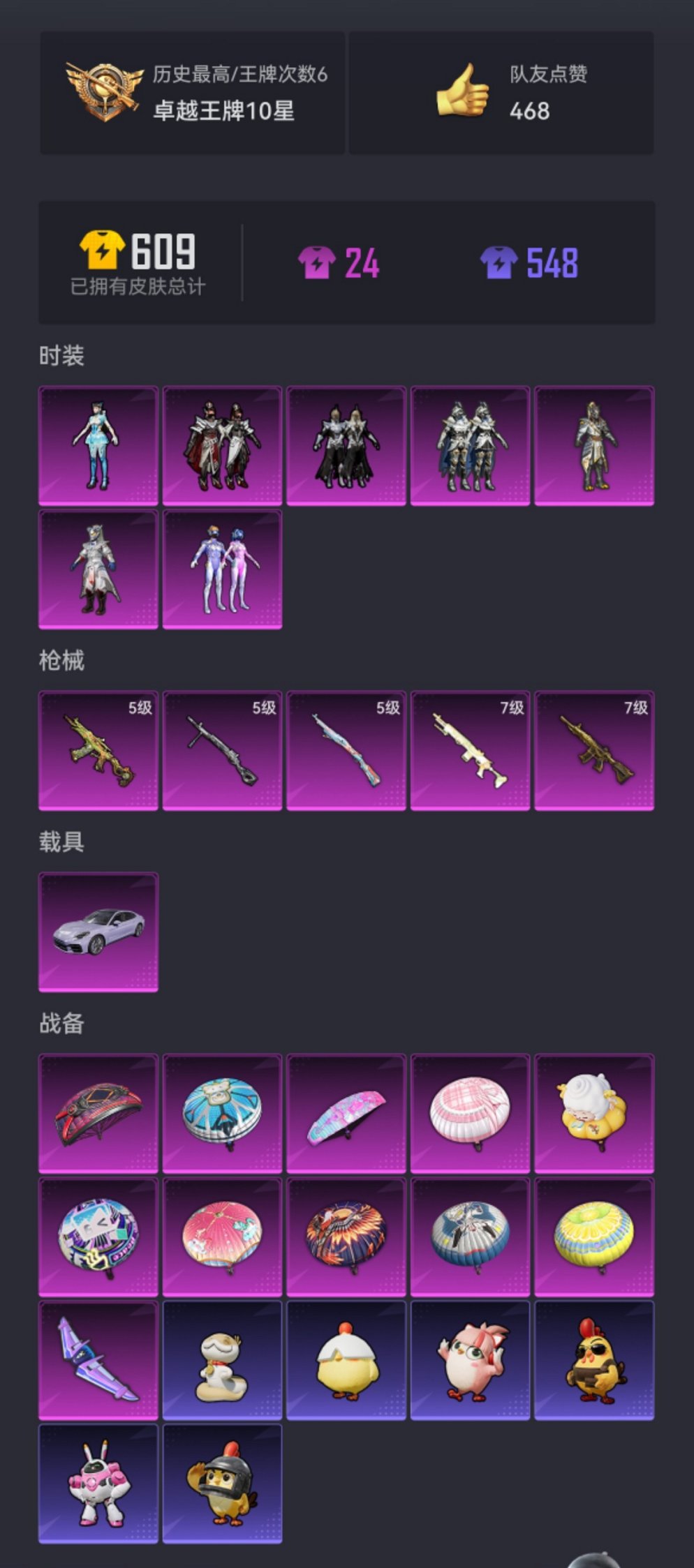 638-可二次实名【都市猎人梦幻火箭满级M4五爪金龙7粉装5特效枪1载具、秒换绑不用等】、苹果Q区-56740热力值-6印记-141套装-164枪皮、【1载具】、保时捷Panamera(星辰紫)【1稀有】、都市猎人【7粉装】、梦幻火箭、银刃赛罗、骨龙祭渊、银龙傲海、金曜白虎、角色-异瞳寒姬【5特效枪】、M416-五爪金龙(7级)、AKS-74U-森灵之息(5级)、Mk14-闲梦青缨(7级)、Kar98K-巳巳如意(5级)、DP-28-豹影疾电(5级)【152热门】、浪漫天命、鹰眼刺客、破蛋小黄鸡