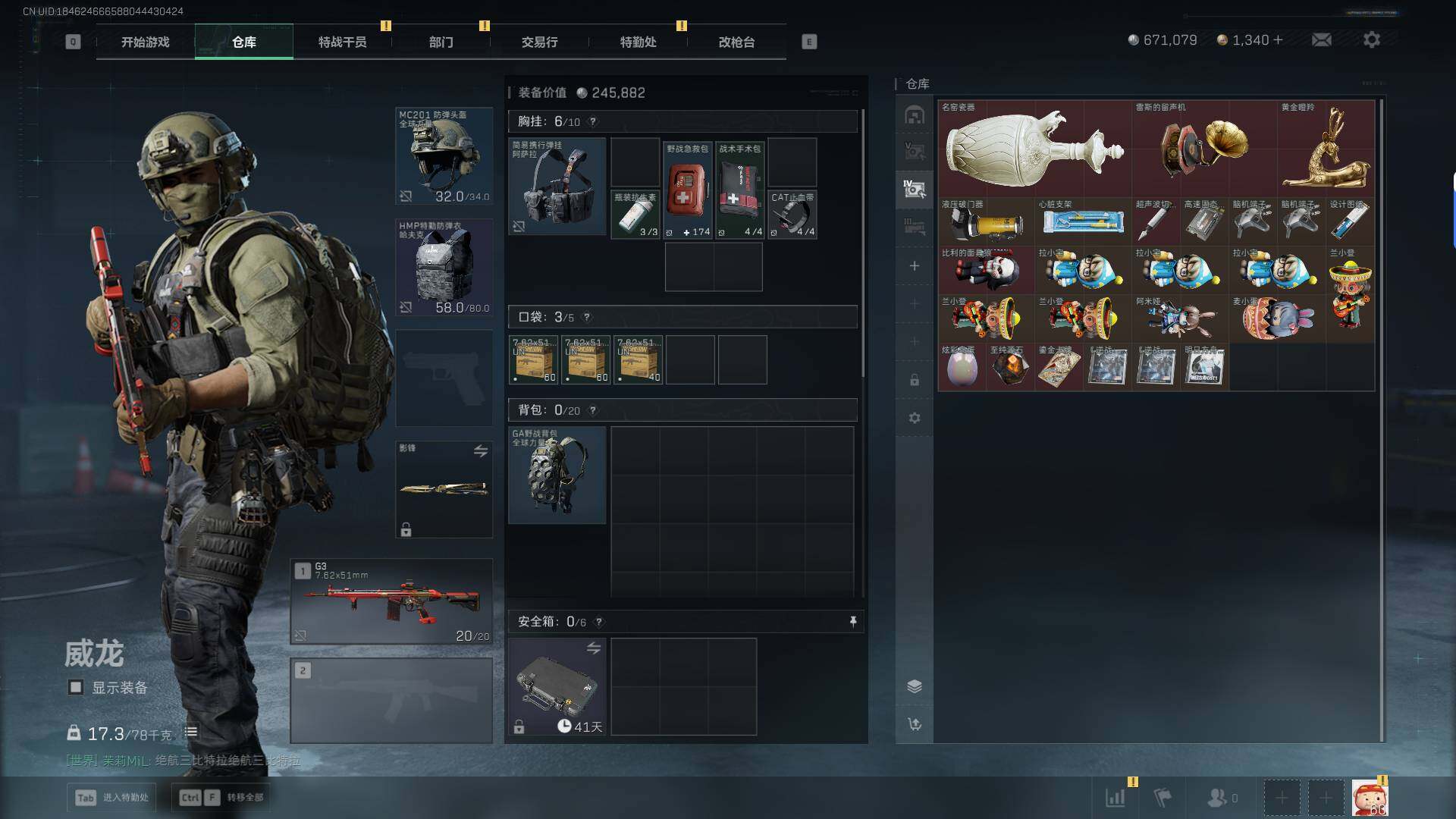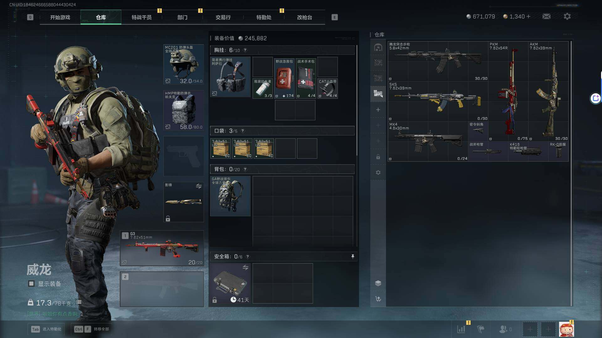 总资产(M):98M/哈夫币(K):671K/哈夫币(K):671K/传说枪皮数:18/全面战场等级