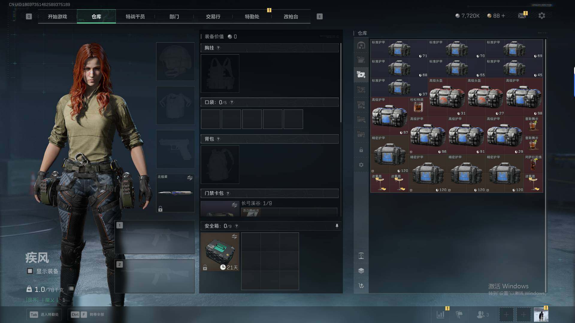 总资产(M):102M/哈夫币(K):7720K/哈夫币(K):7720K/传说枪皮数:23/全面战