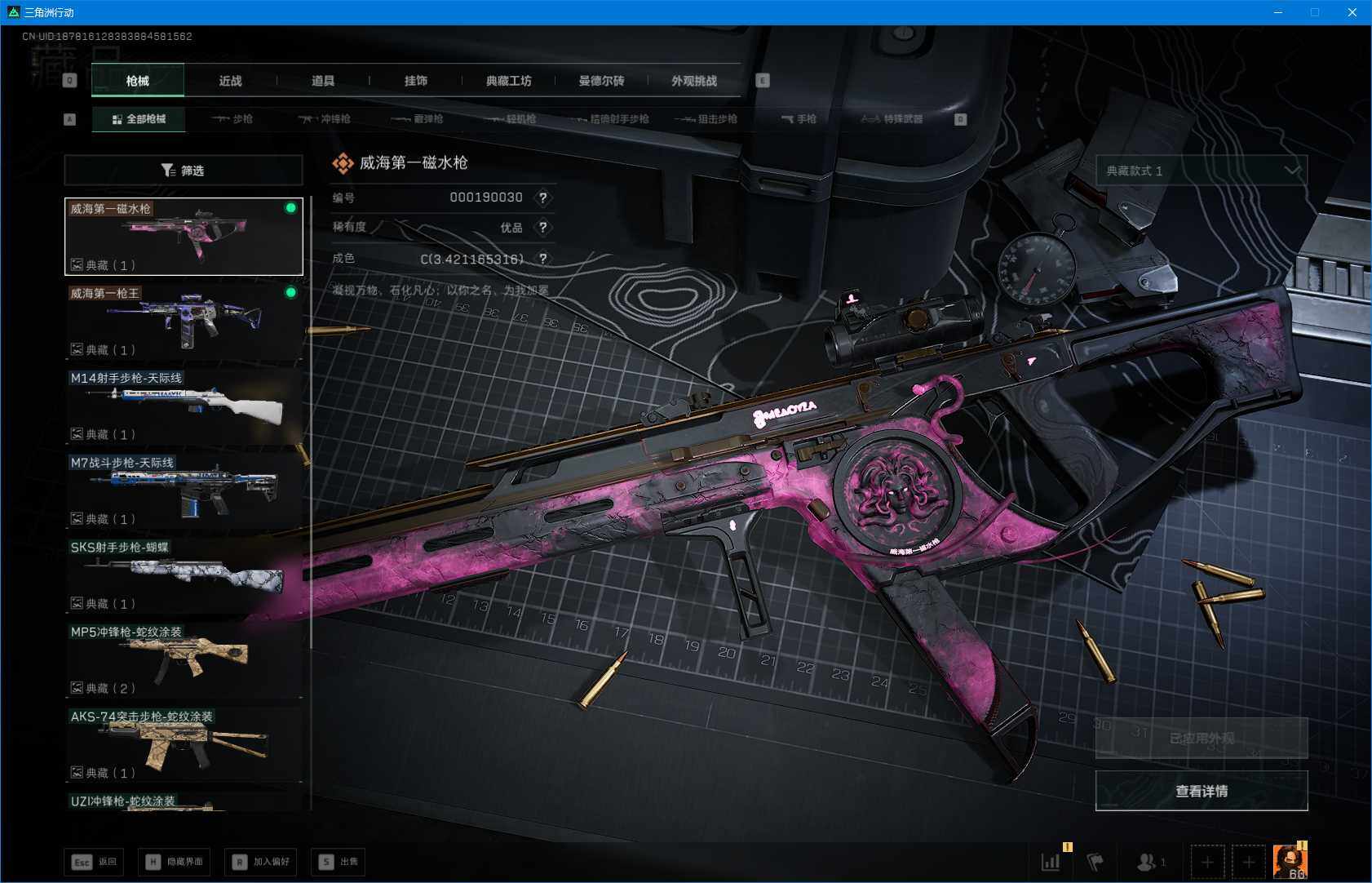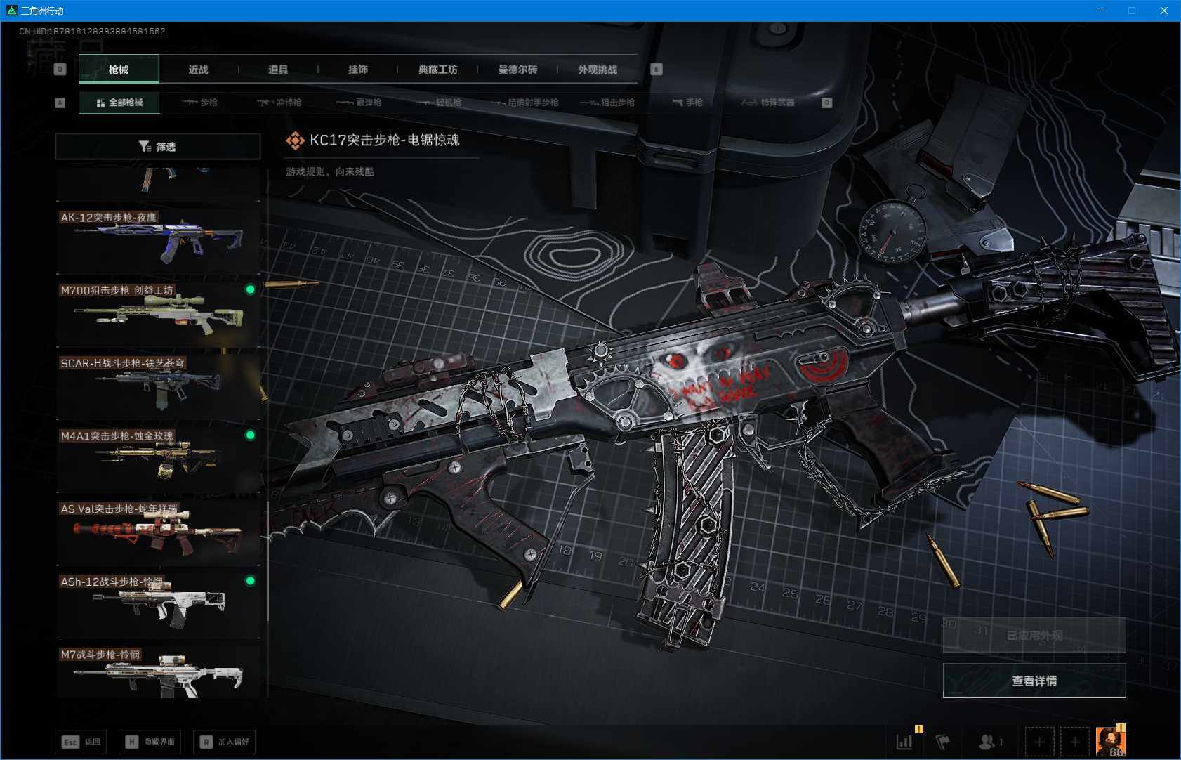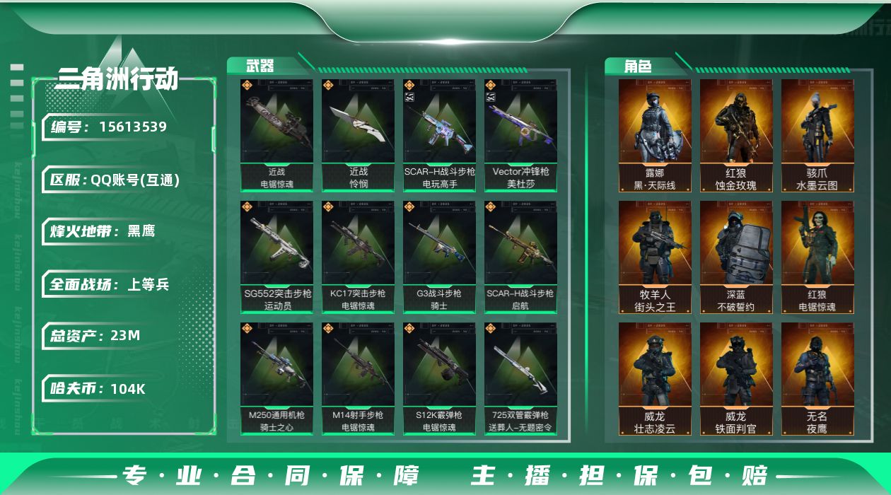 总资产(M):23M/哈夫币(K):104K/哈夫币(K):104K/全面战场等级:35_段位:上等