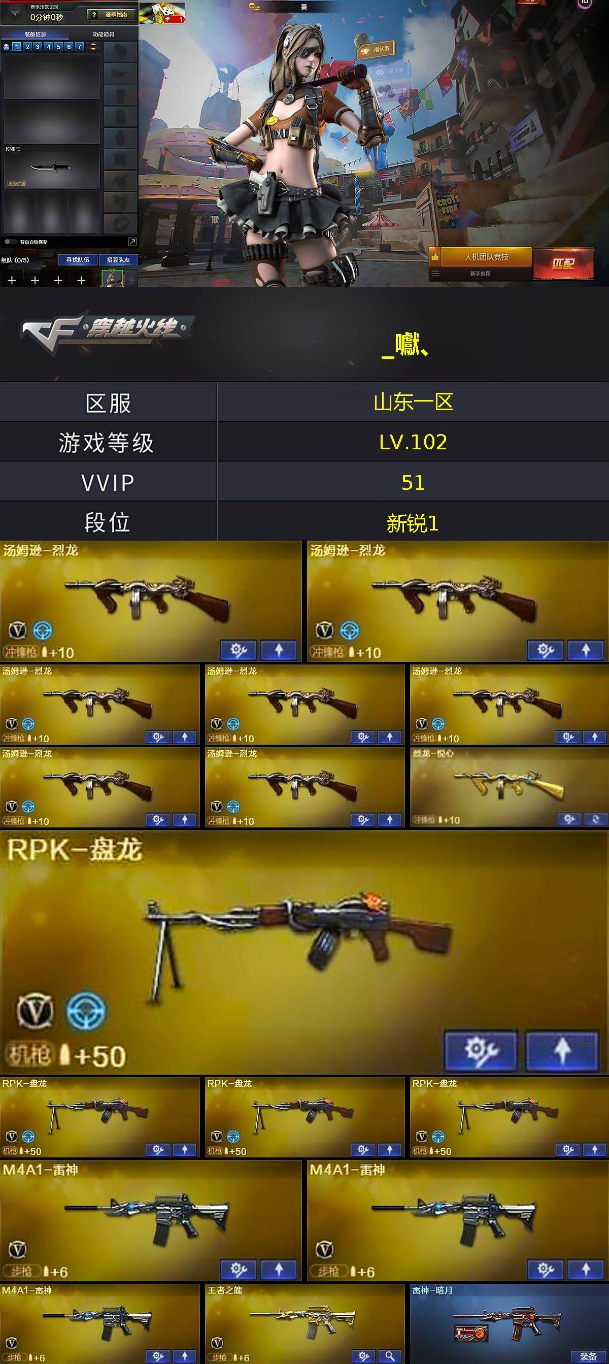 【热门武器】:死亡之眼*2,M4A1-黑骑士*2,汤姆逊-烈龙*7,RPK-盘龙*4,加特林-炼狱*2,斯泰尔-蝴蝶,沙鹰-修罗*2