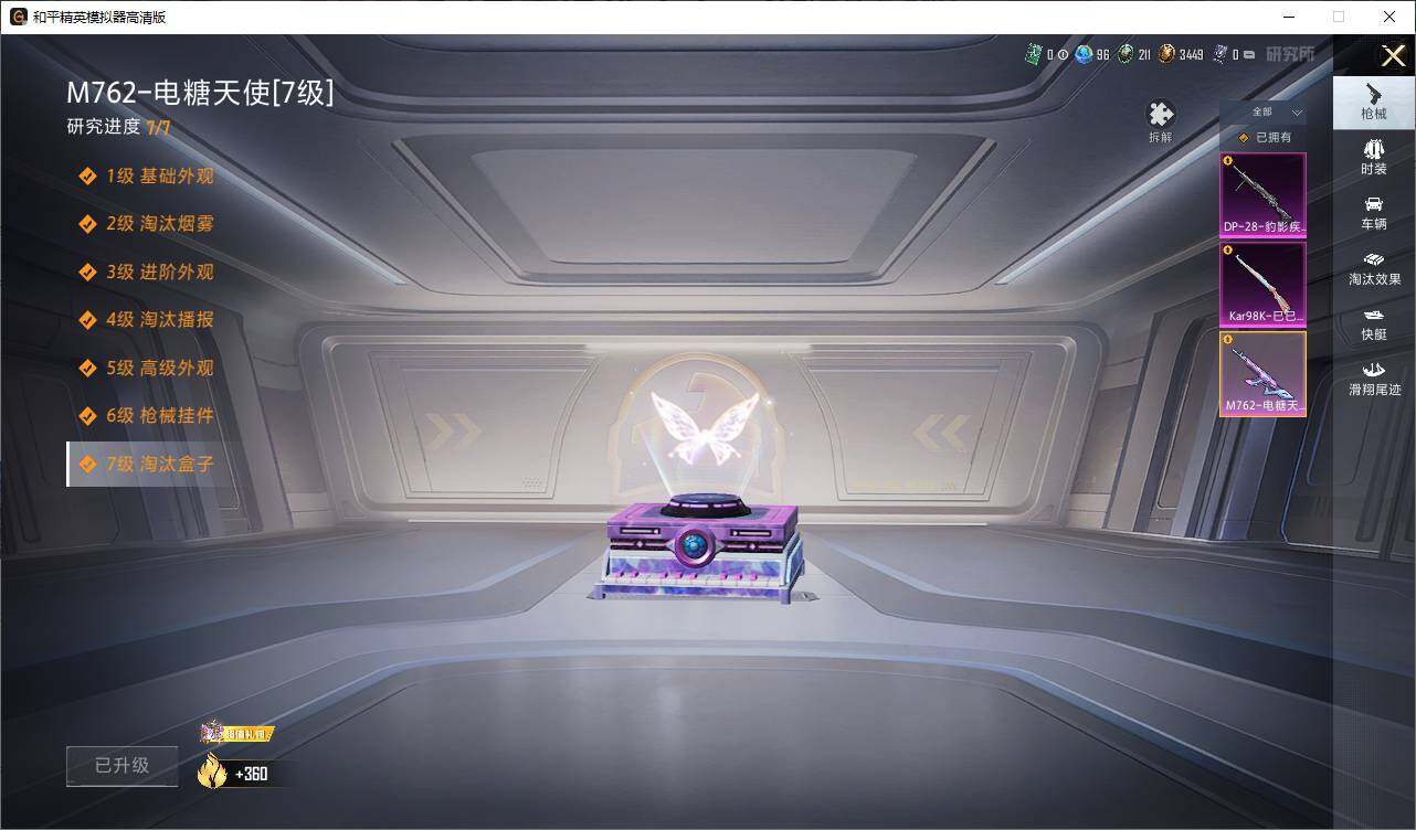 98套装/枪械3/装备180/载具1/战备109/王牌印记5/热力值39321/七级M762