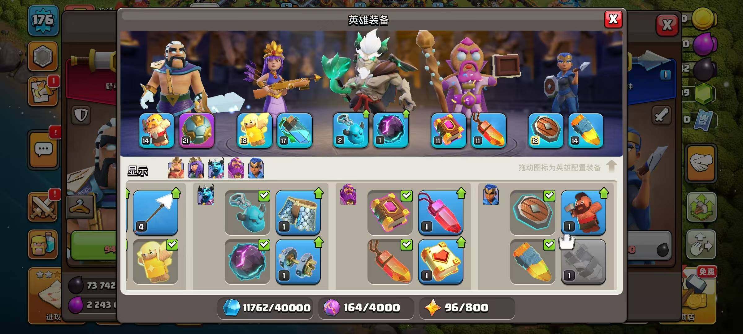 【COCX730】等级176/6农/英雄等级52-80-51-30/冰天雪地/海上基地/部落工坊/皇家竞技场/幽静丛林/像素世界/魔法世界