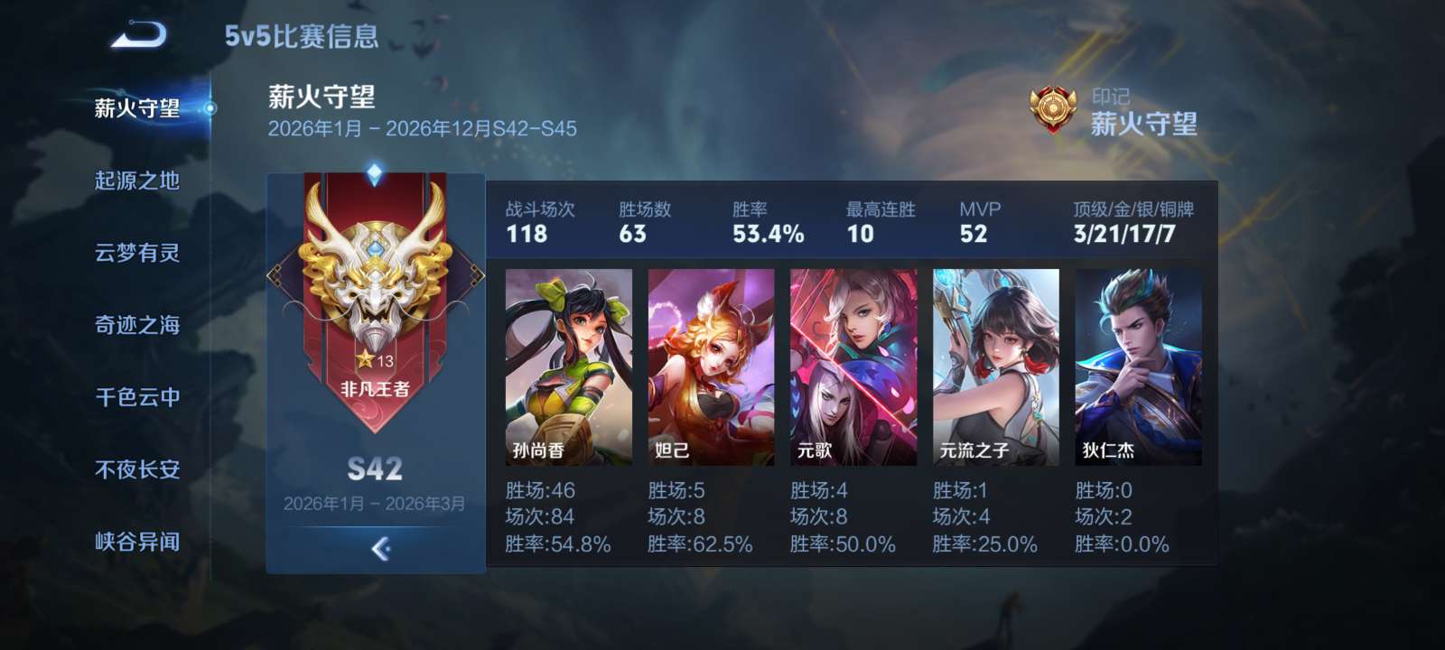 香香带有末日机甲,现在巅峰1600多,用完赛季遗忘之水香香胜率70多