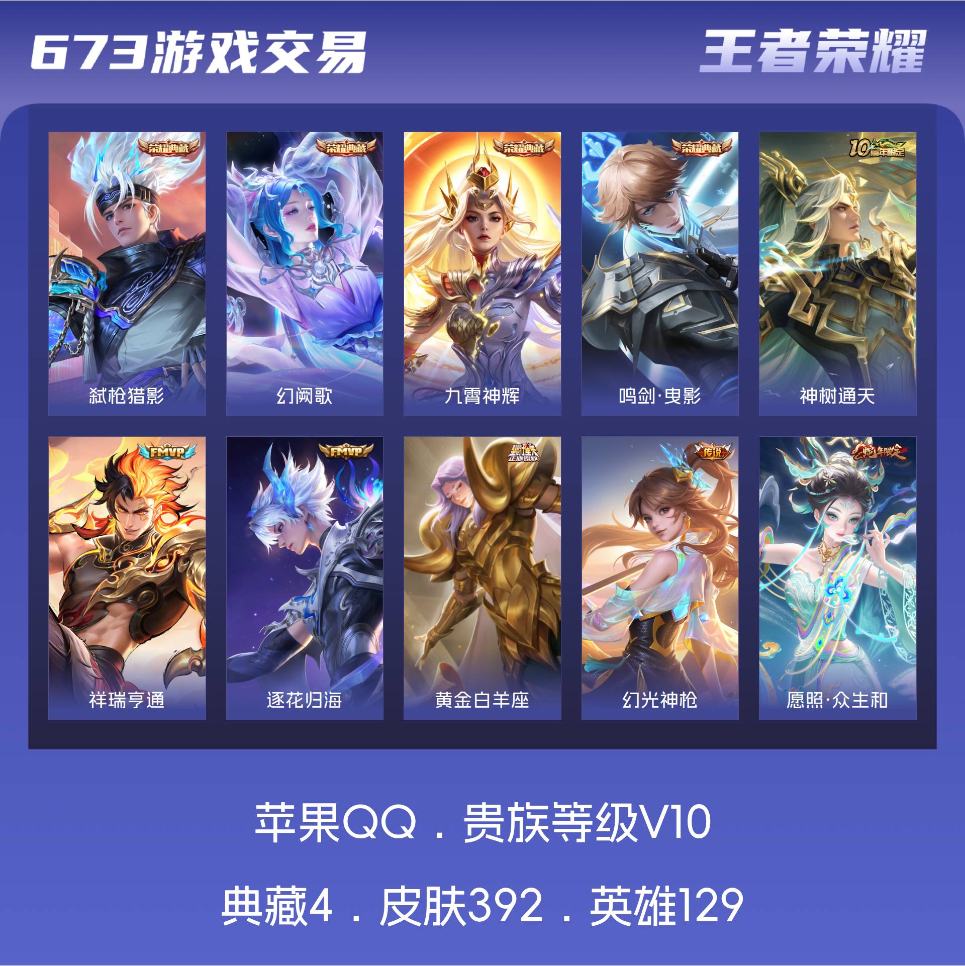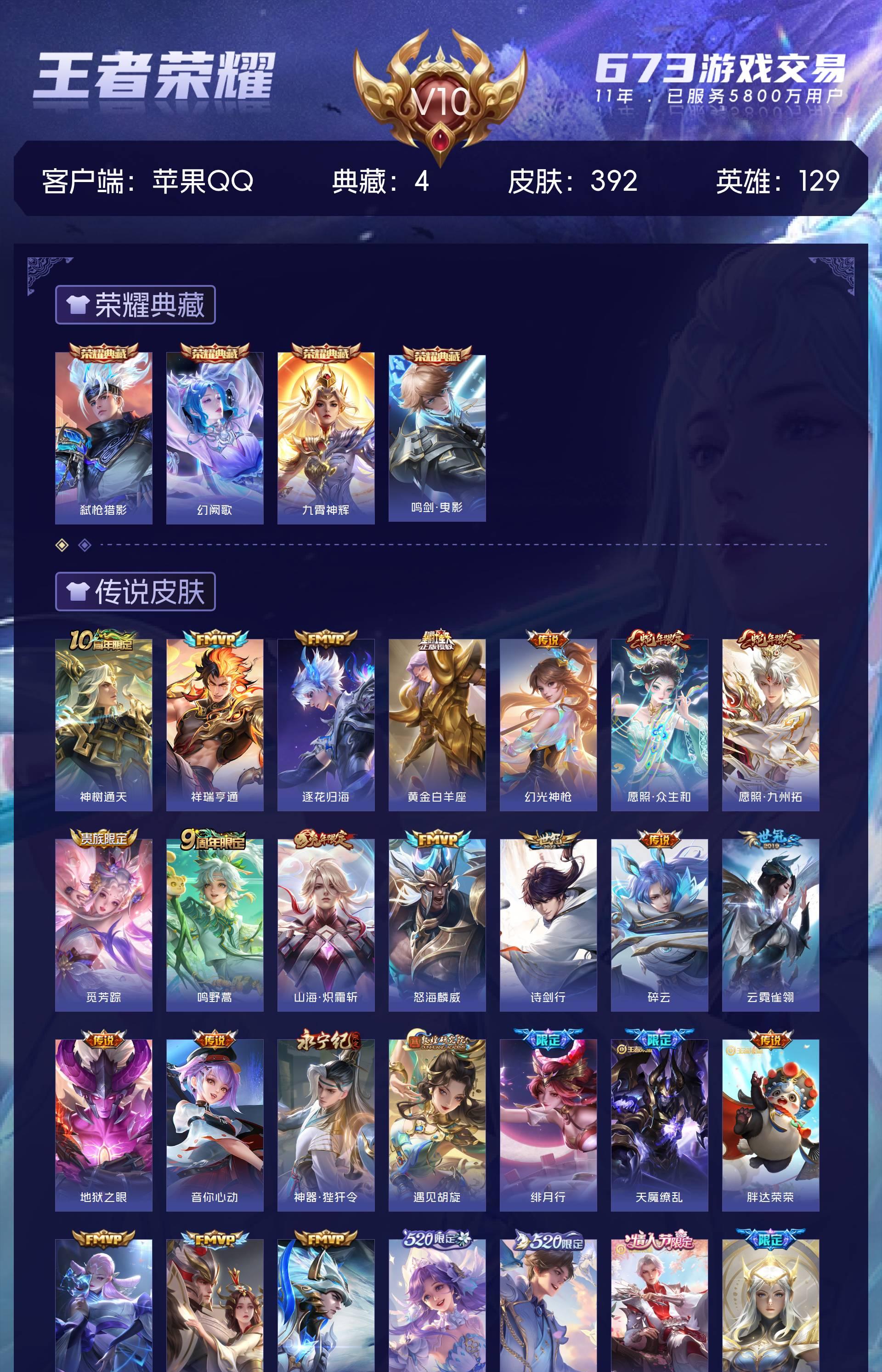 V10 皮肤392 英雄129 至尊星耀 荣耀典藏4 传说44 其他皮肤350