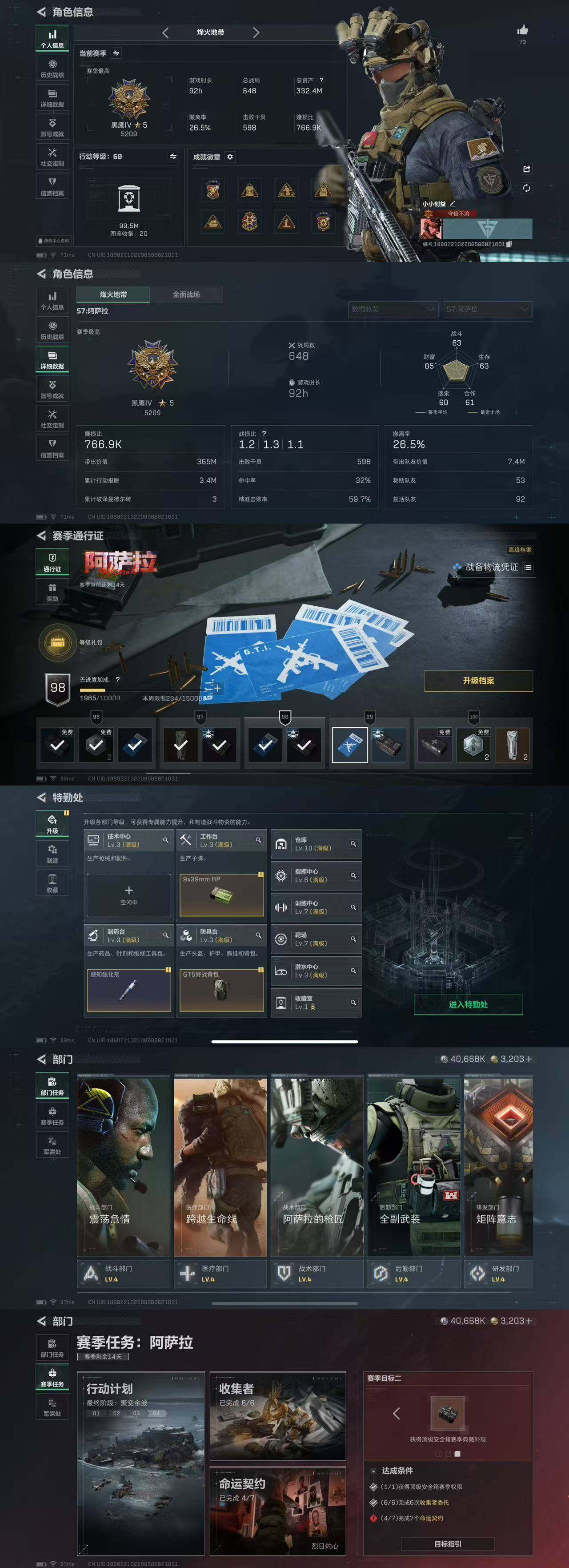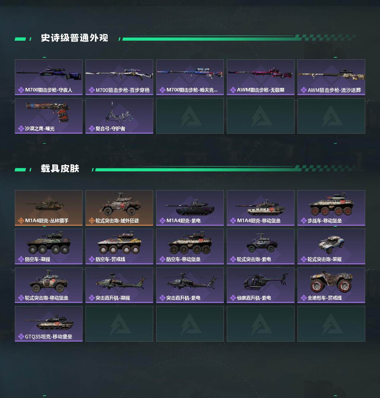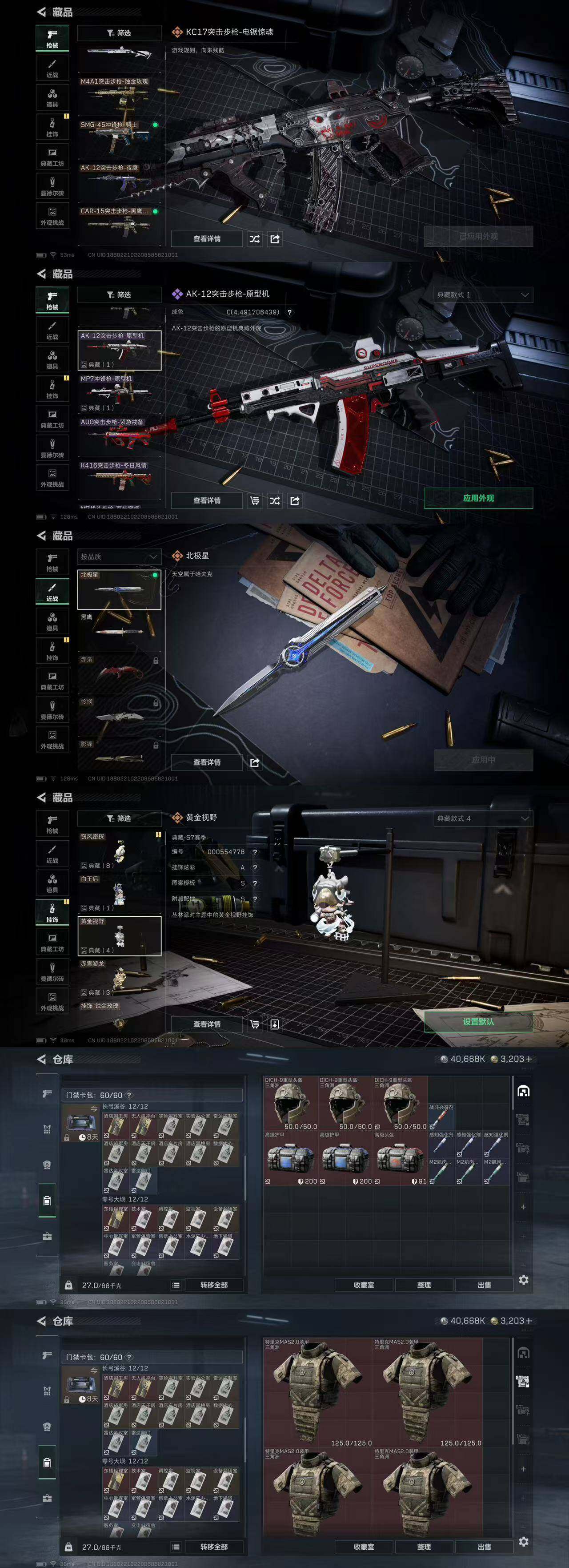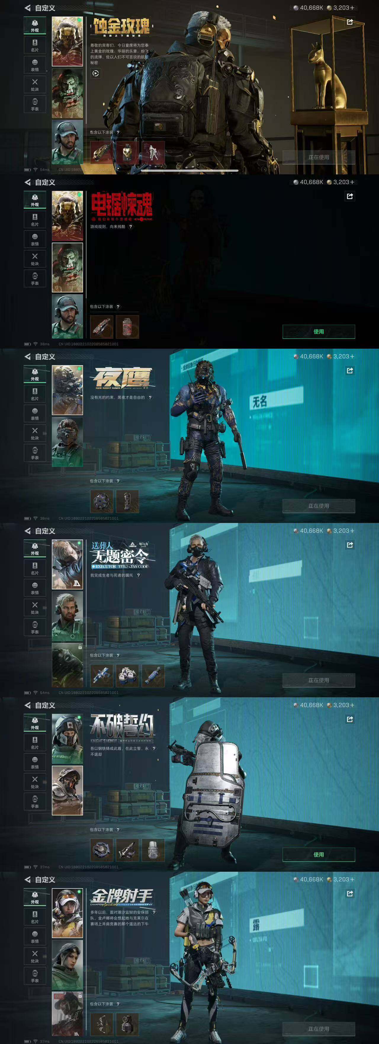 332M 红狼玫瑰和电锯 夜鹰 蜂医送葬人 深蓝不破誓约 露娜金牌射手 骇爪联动 刀皮北极星 8把典藏K416 优品B王牌之剑 优品S悬赏令 优品S棱镜M4 优品S电玩 优品S棱镜S2 10仓7体7负重 多咖啡豆 12发AW 有通行证 3203三角卷