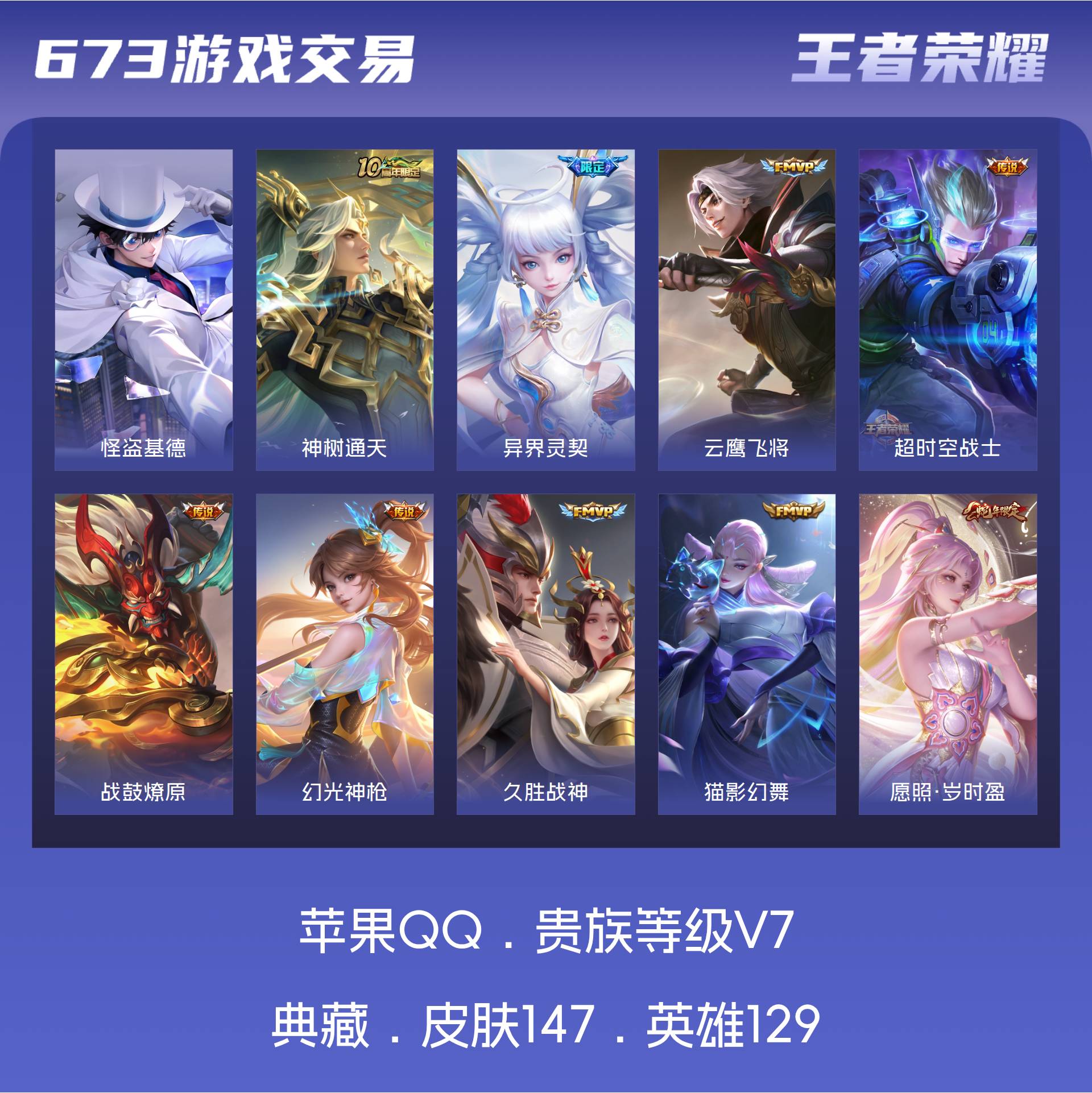 V7 皮肤147 英雄129 至尊星耀 珍品传说1 传说12 其他皮肤140