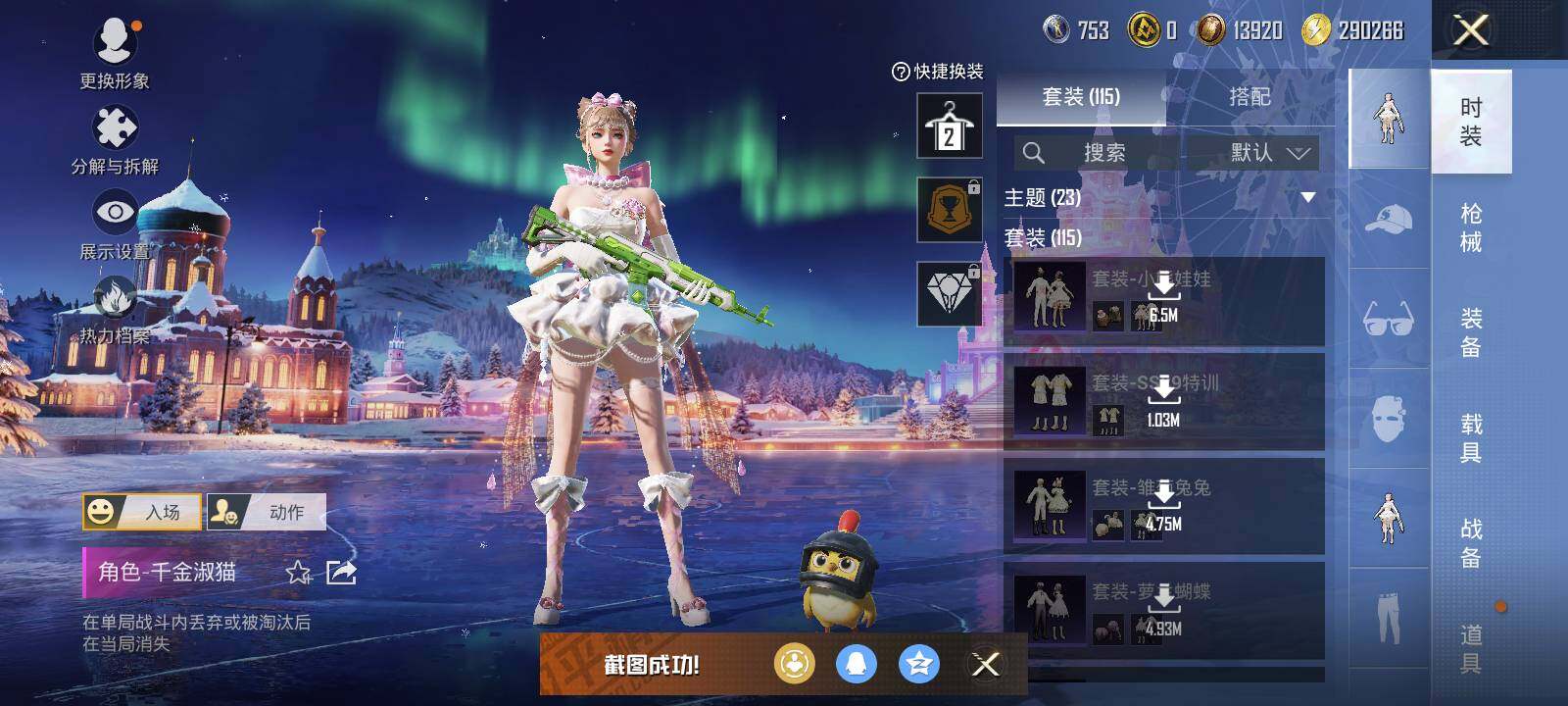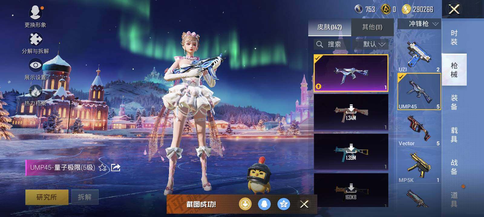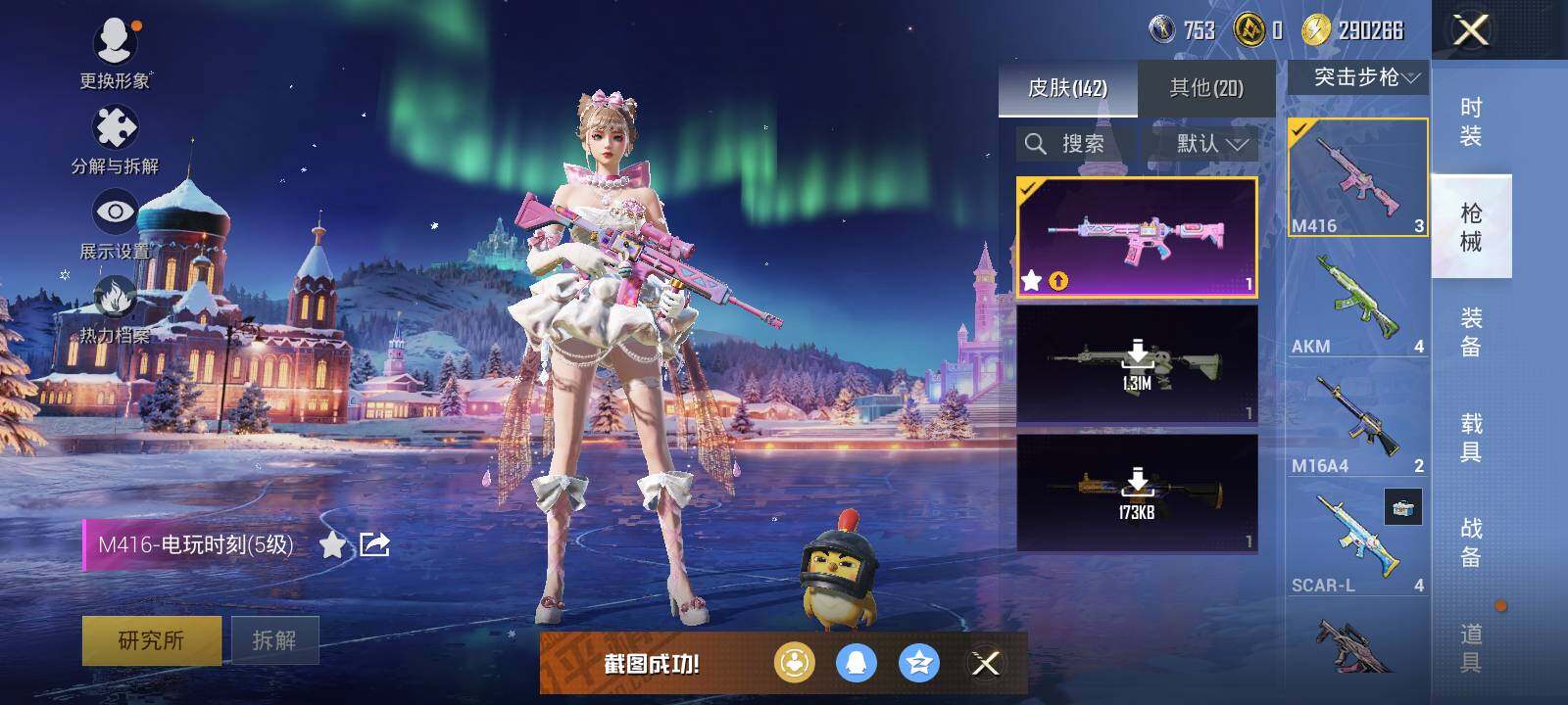 【粉色枪皮等级】:M416-电玩时刻(五级),GROZA-镜光银凌(五级),AUG-暖羊咩咩(五级),UMP45-量子极限(五级),Kar98K-巳巳如意(五级),