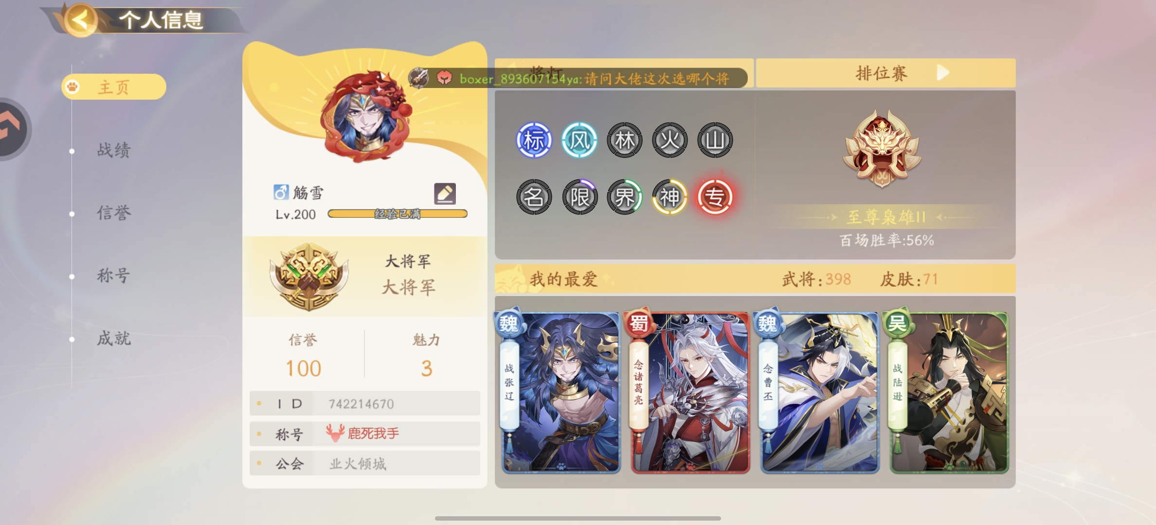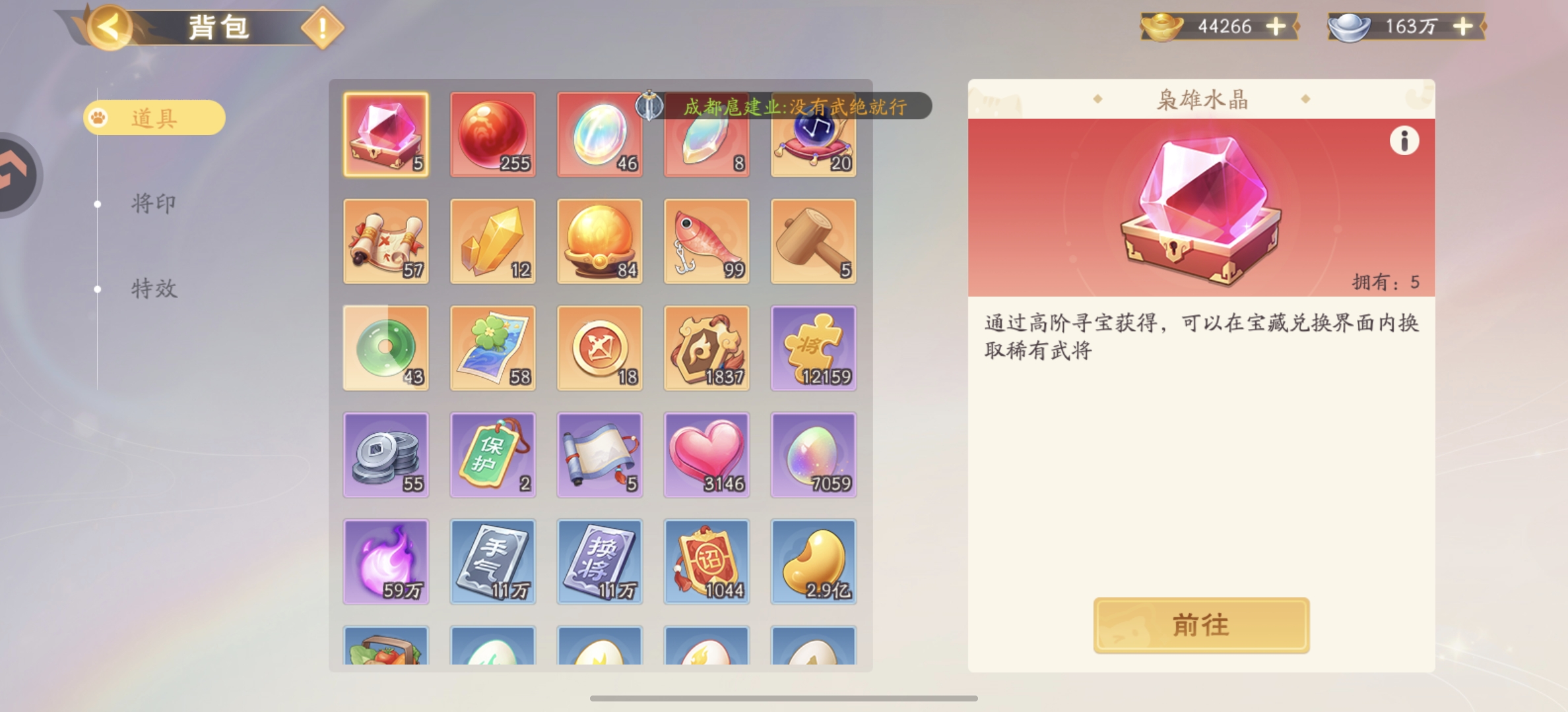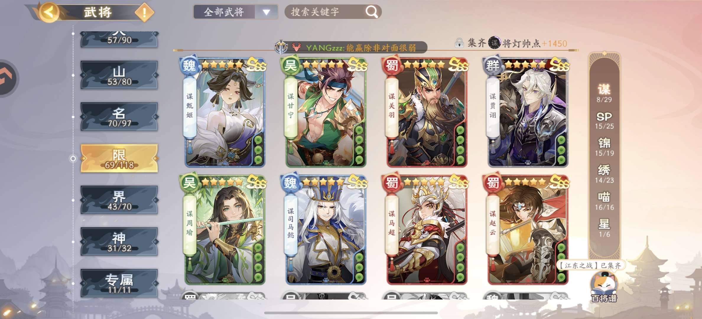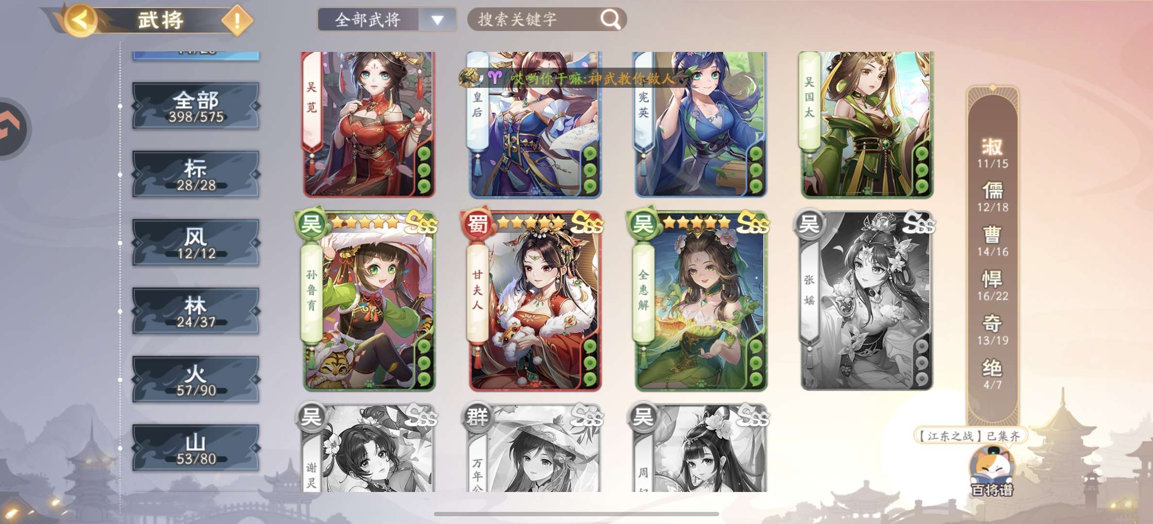 六战4念一隐,双头夫人和夫人都有,1680武将基本都有,背包还有5个水晶48猫眼30多个突破石