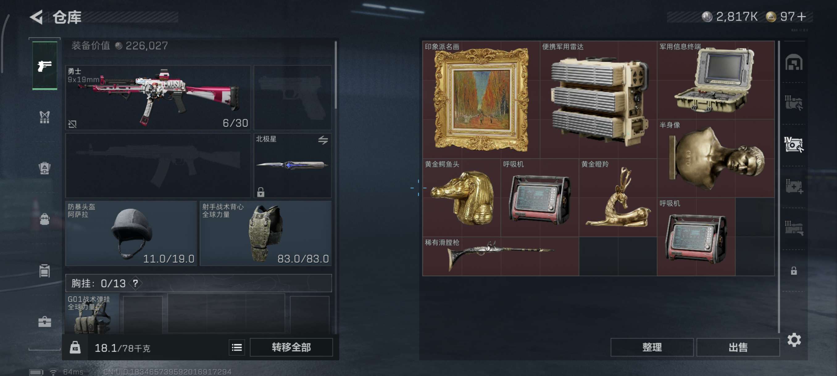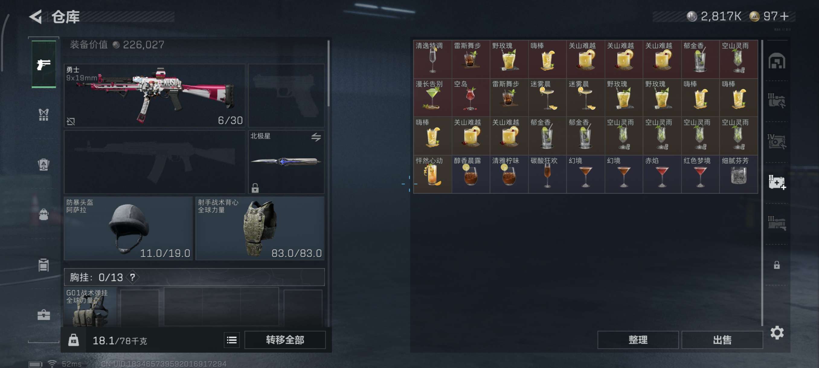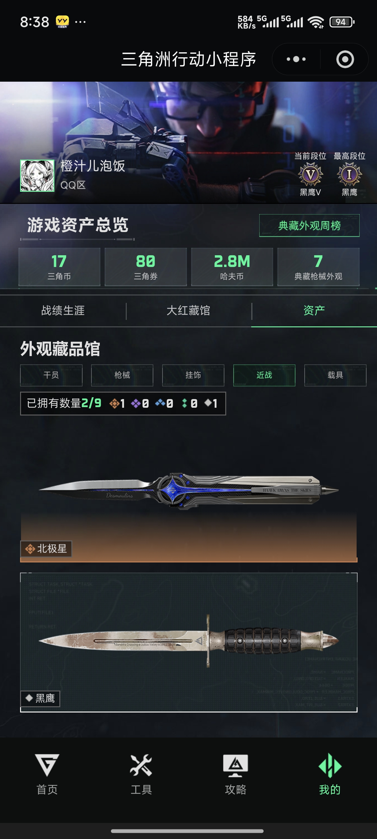 自己看截图吧,绝版刀皮北极星,金狼,黑天线还有些金皮,仓库还有大红没卖,人脸大概在3月份左右就能换