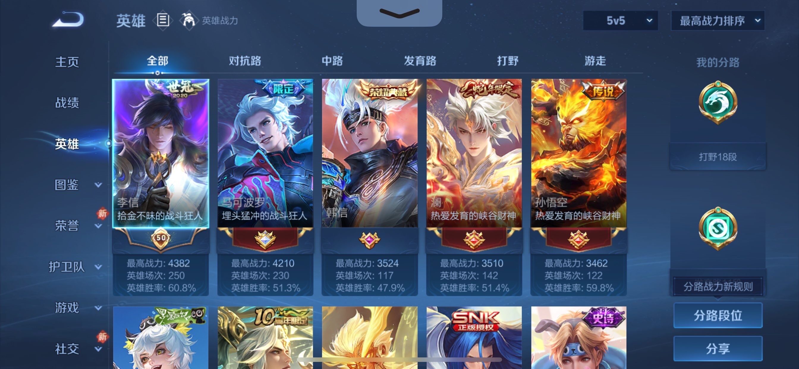 可换绑【韩信典藏 蛇年限定 多传说限定号】11按键 3王者印记 五级铭文90