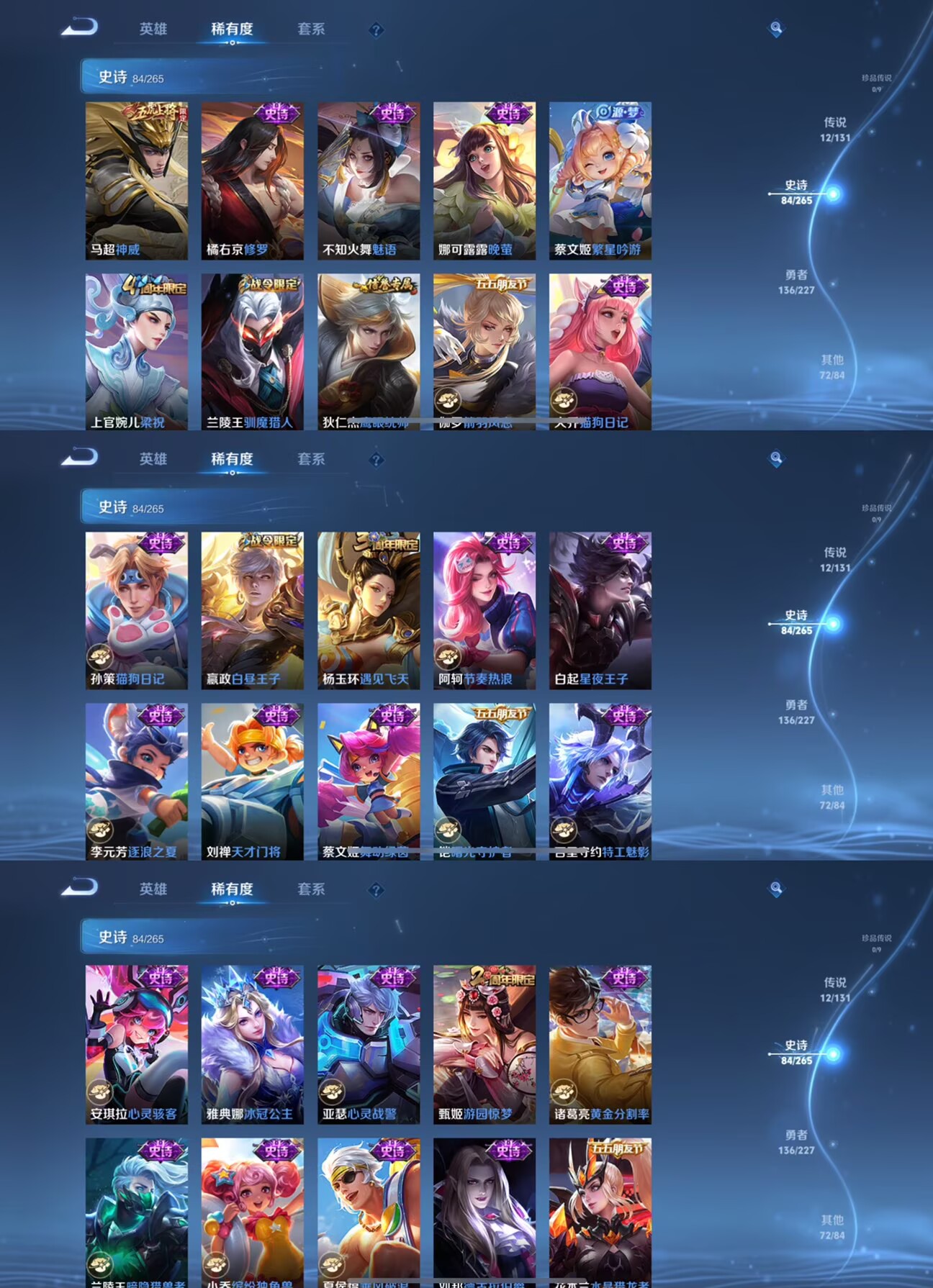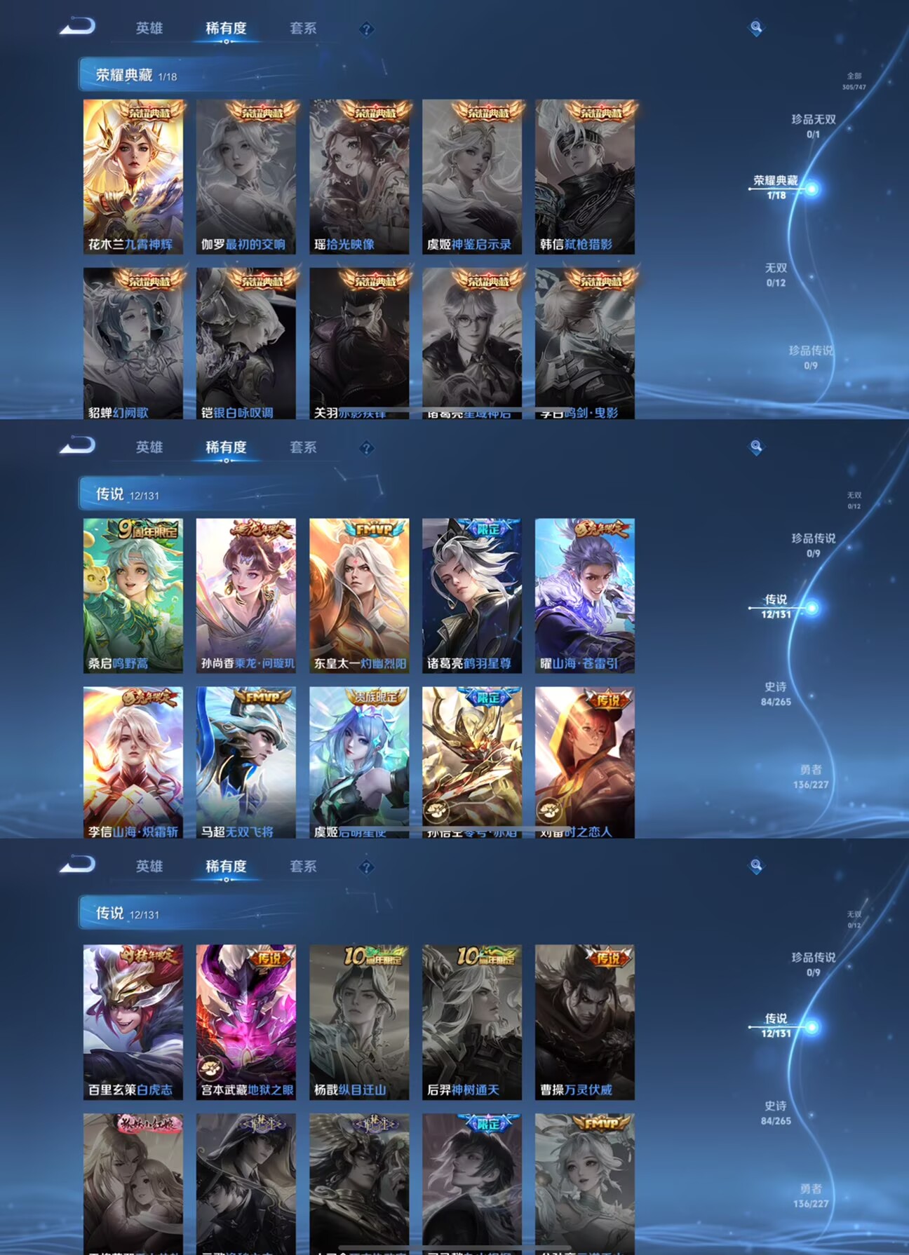 苹果Q-最强王者-125英雄-305皮肤-1典藏-12传说-84史诗