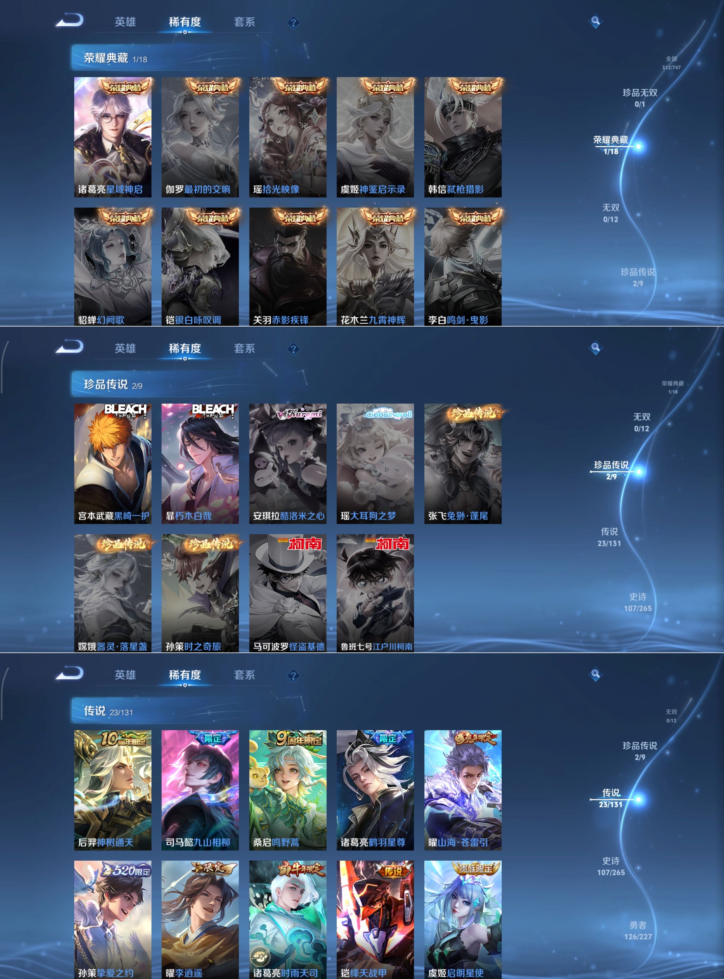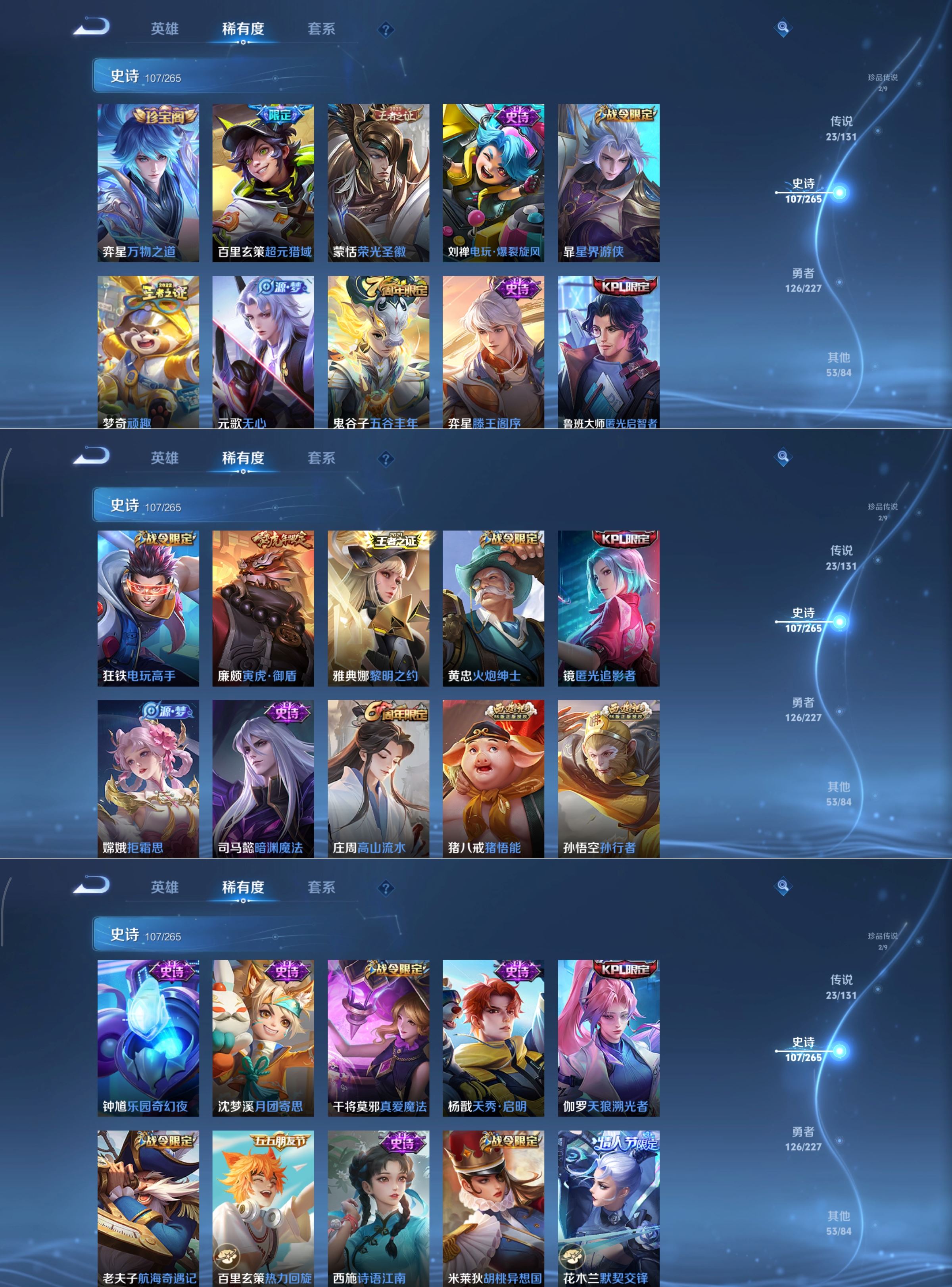 安卓Q-非凡王者-126英雄-312皮肤-1典藏-2珍品传说-23传说-107史诗