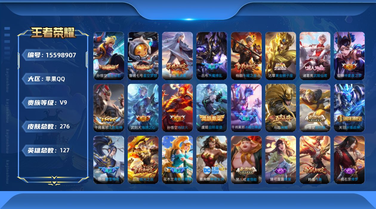 [15598907]V9 2典藏 10传说 127英雄 276皮肤 典藏英雄武则天 可修改实名