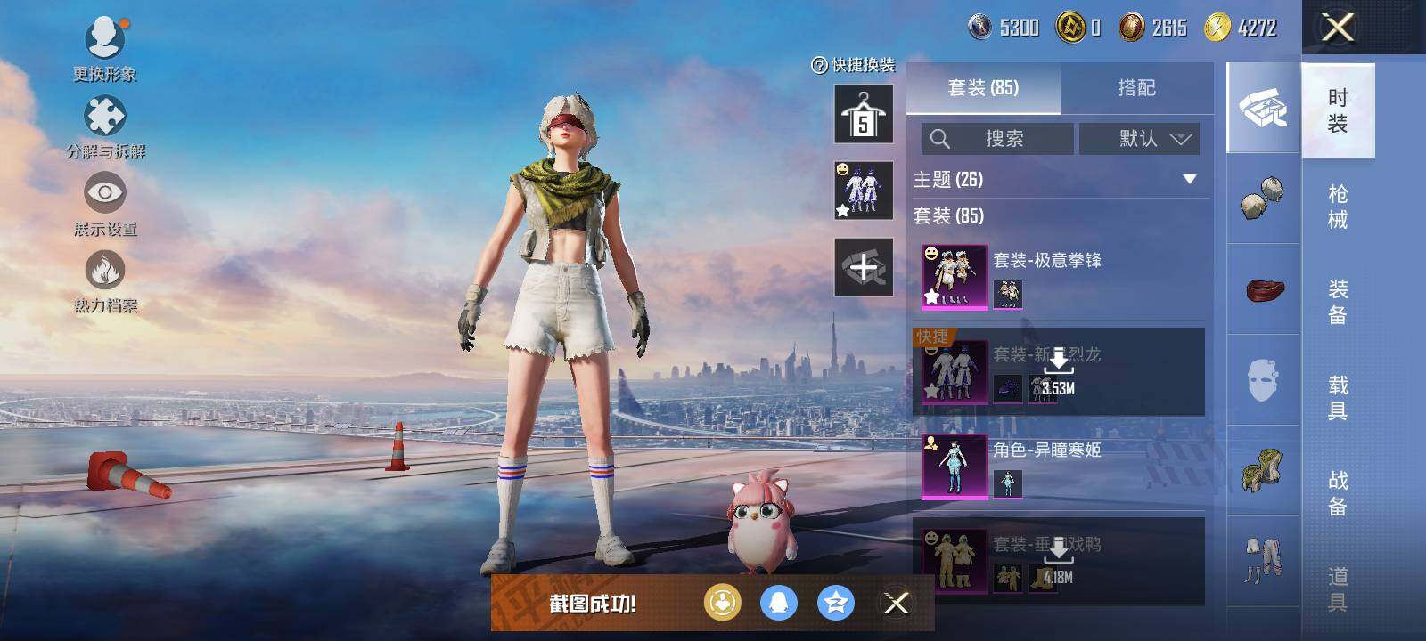 【粉色套装】:粉装-新星烈龙,粉装-垂柳戏鸭,角色-异瞳寒姬,粉装-极意拳锋