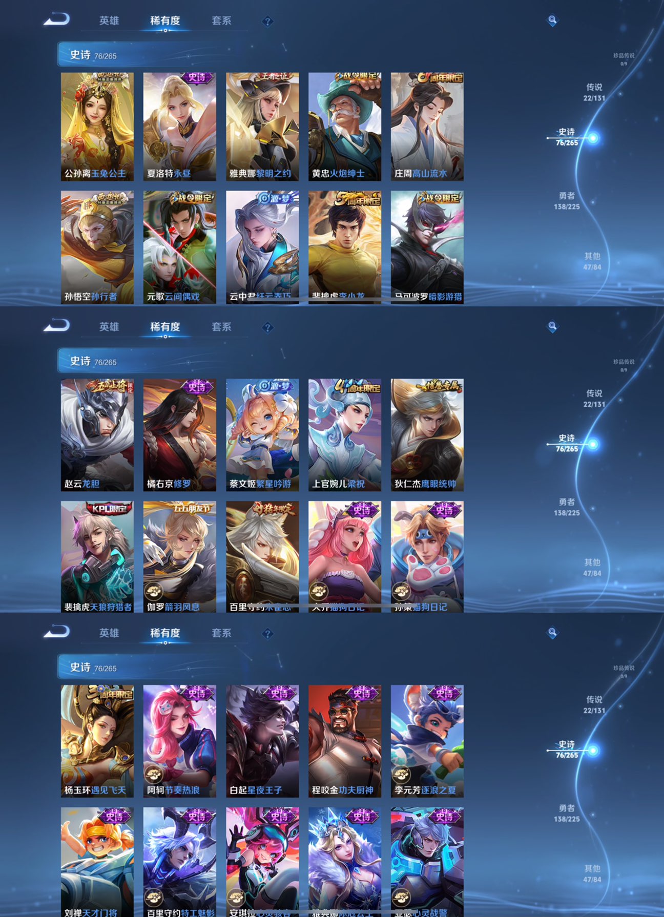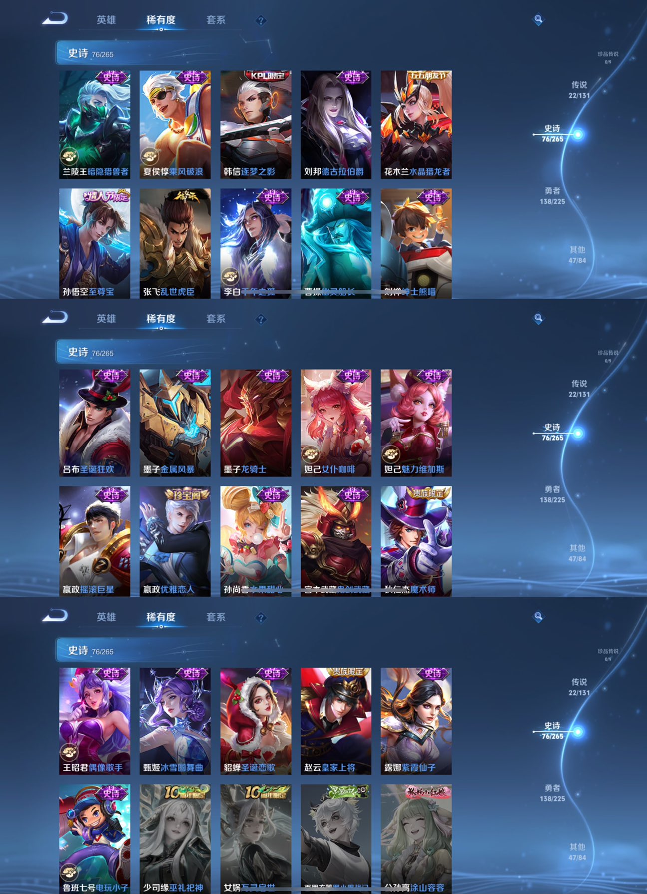 苹果Q-至尊星耀III-126英雄-285皮肤-2典藏-22传说-76史诗