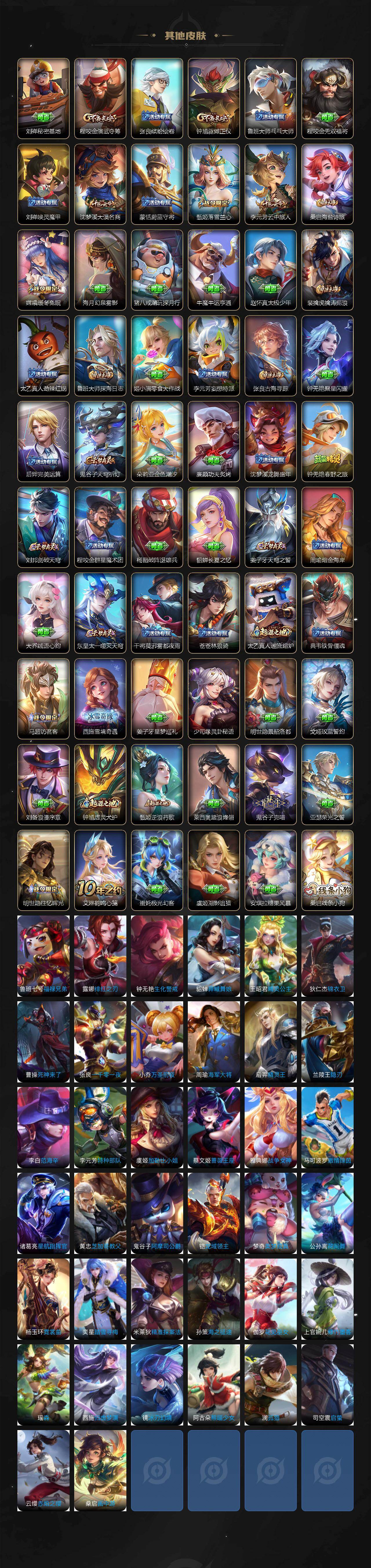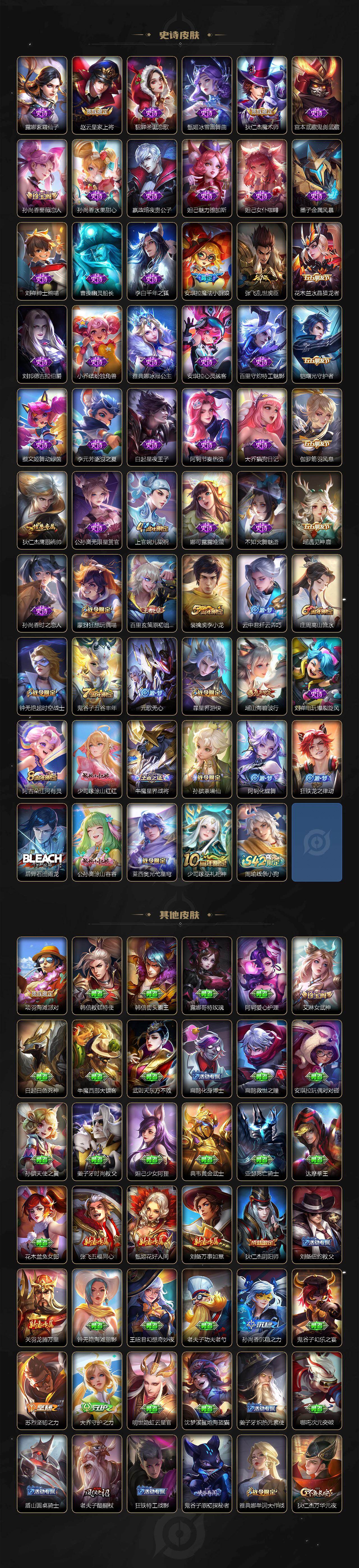 【史诗皮肤】 茶境仙 星界战将 谧流熔炉 涂山容容 龙之律动 遇见神鹿 线条小狗 熊喵少女 山海·碧波行 踏浪烽翎 聚星闪耀 江河有灵 涂山红红 死神来了 超
