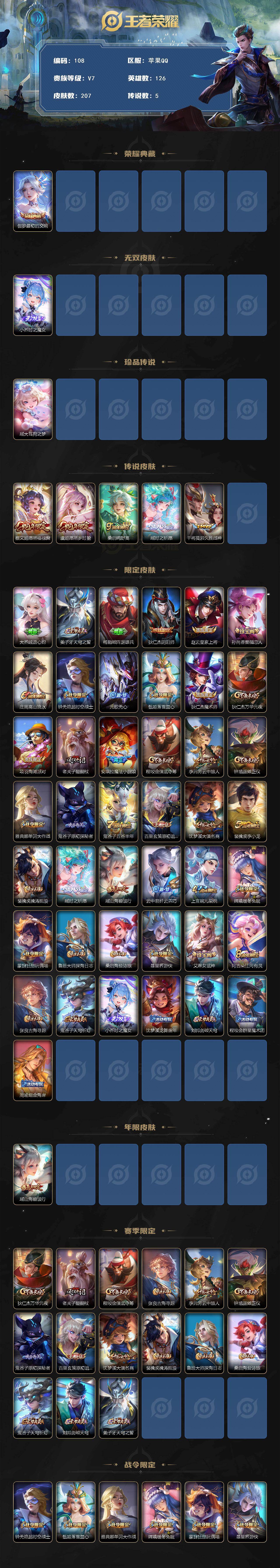 WLWZ931【极品女号v7 1典藏 1无双 1珍品 5传说 无双小乔 珍品瑶 传说瑶 女号 】苹果Q-至尊星耀IV-126英雄-207皮肤-1无双-1典藏-1珍品传说-5传说-58史诗