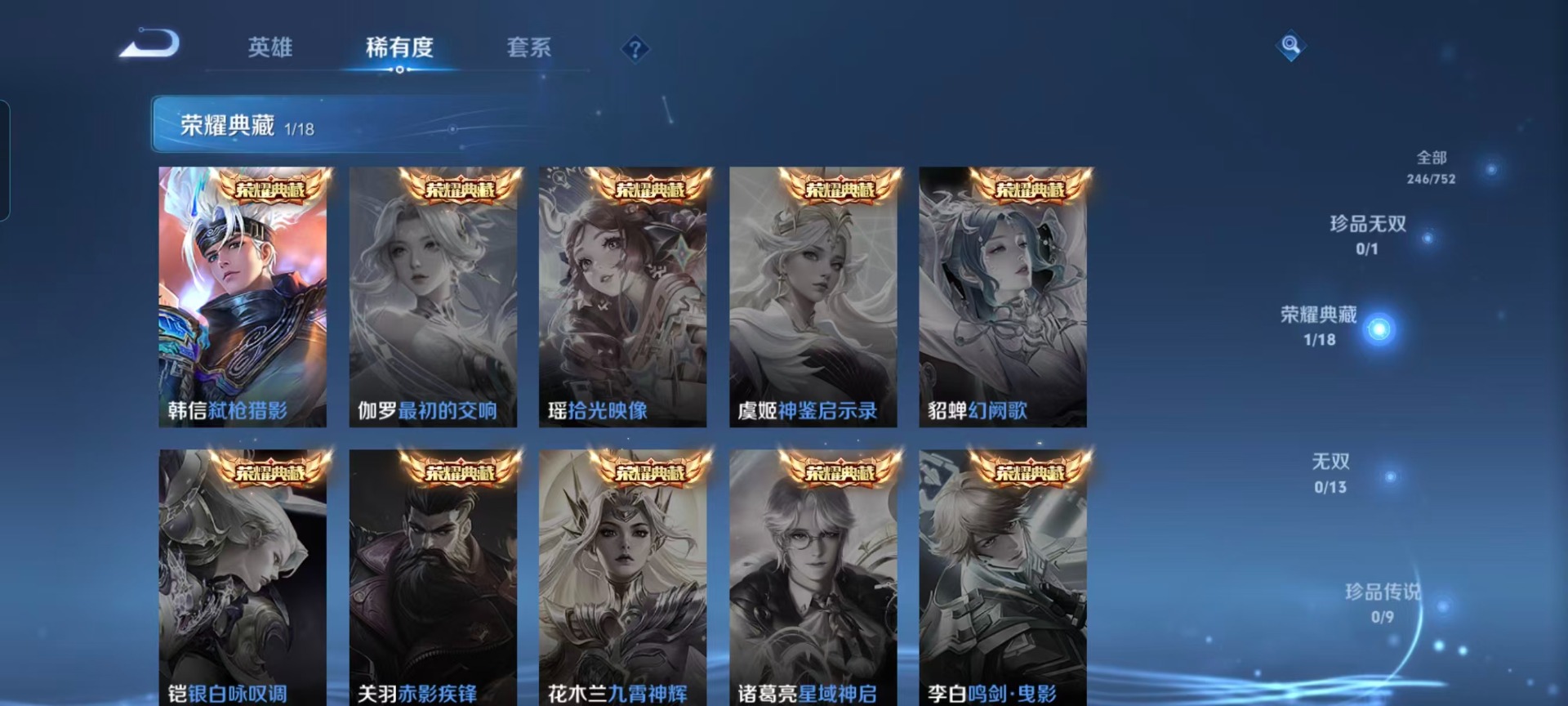 V7 1典藏 10传说 127英雄 246皮肤 可修改实名 【英雄全皮】李信全