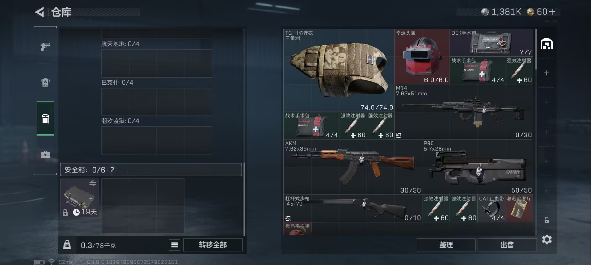 总价值11.4M-哈夫币1381k-烽火地带等级60-烽火地