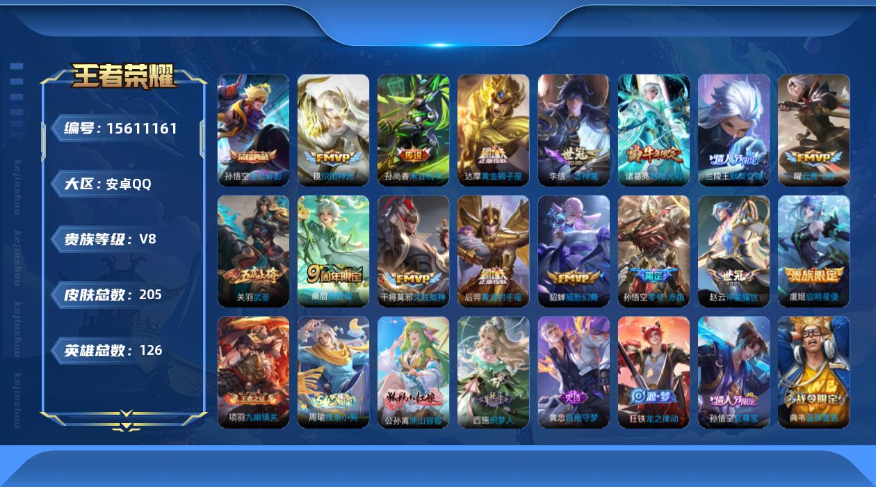 [15611161]V8 1典藏 15传说 126英雄 205皮肤 可修改实名