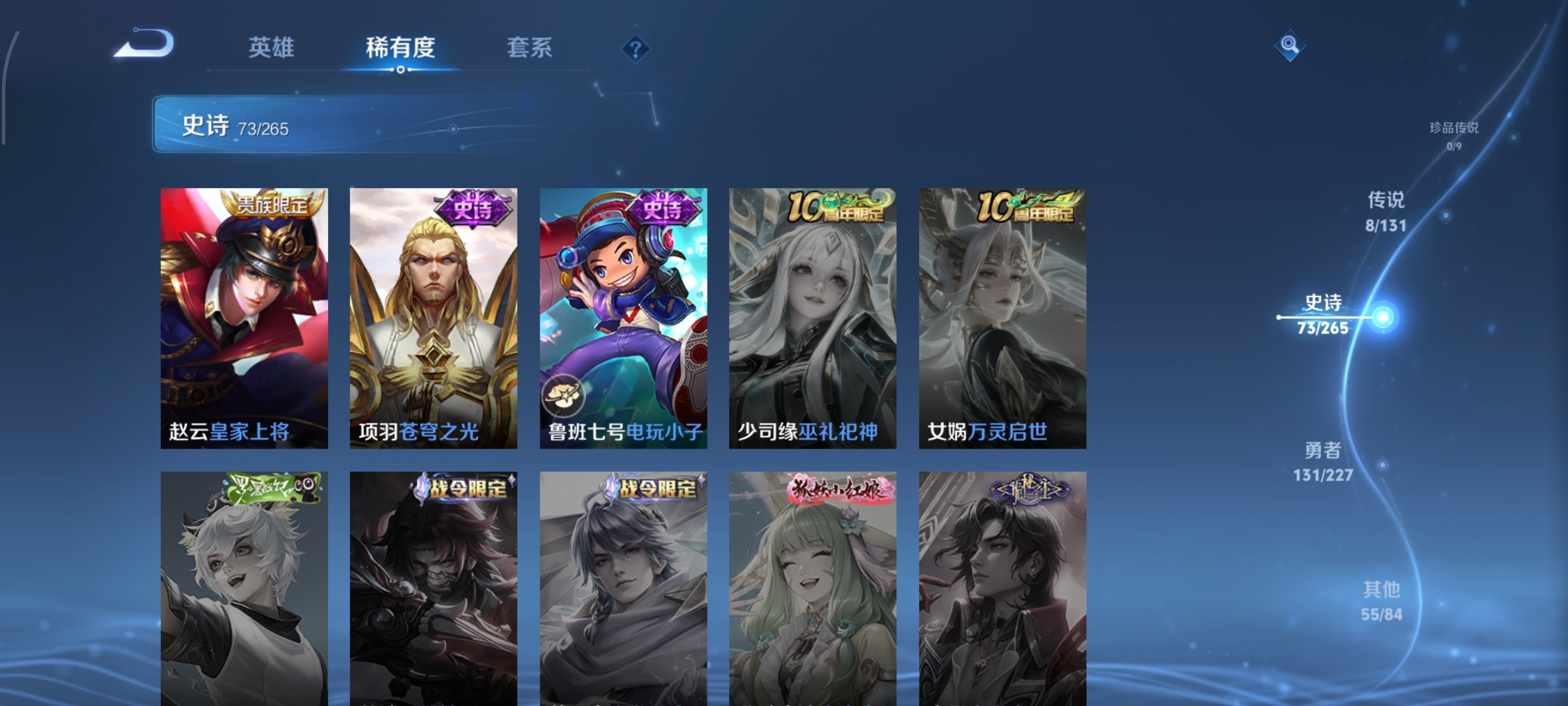 安卓Q-绝世王者-127英雄-268皮肤-1典藏-8传说-73史诗