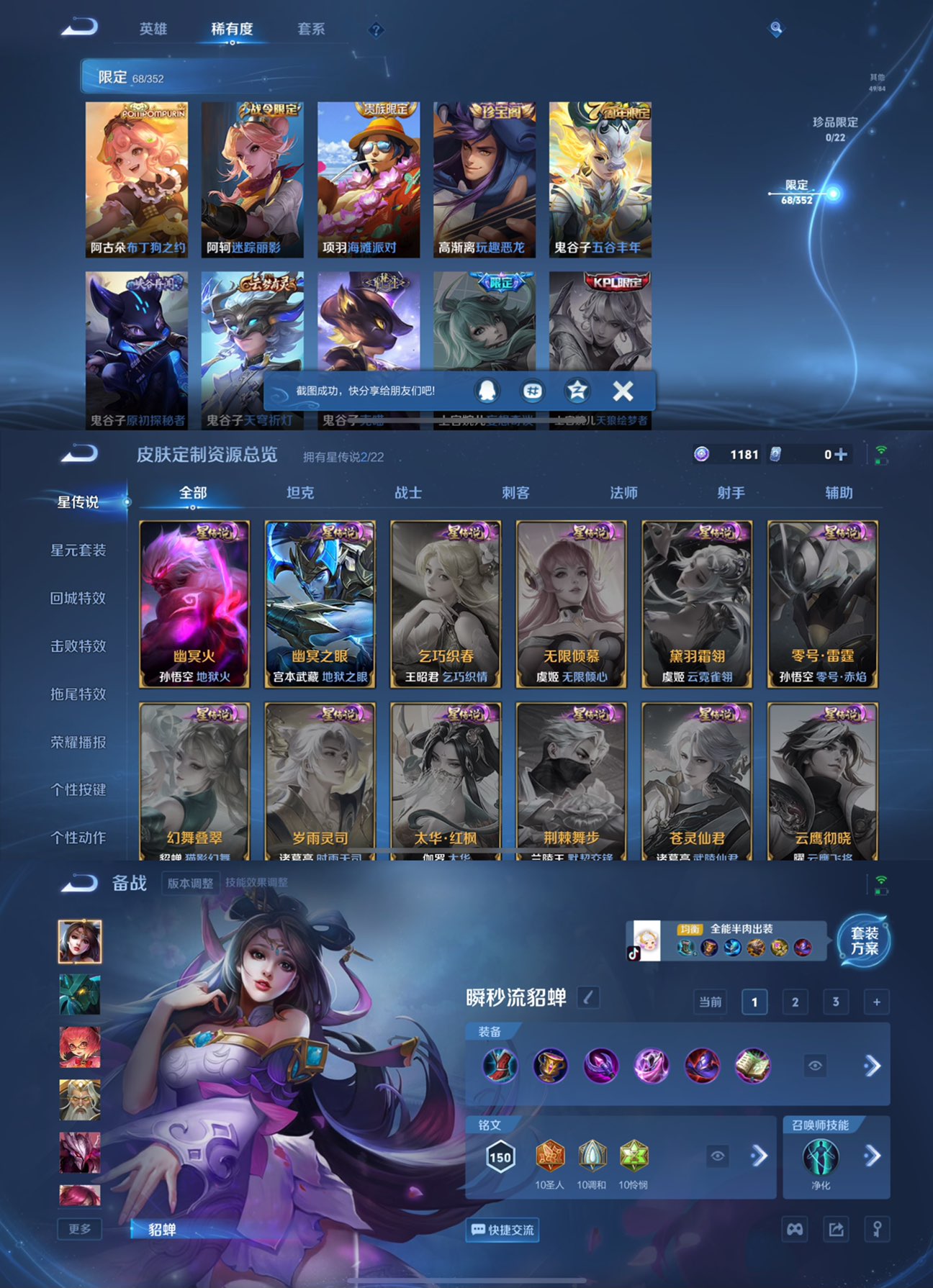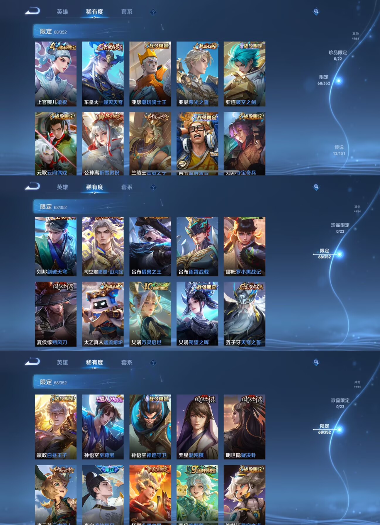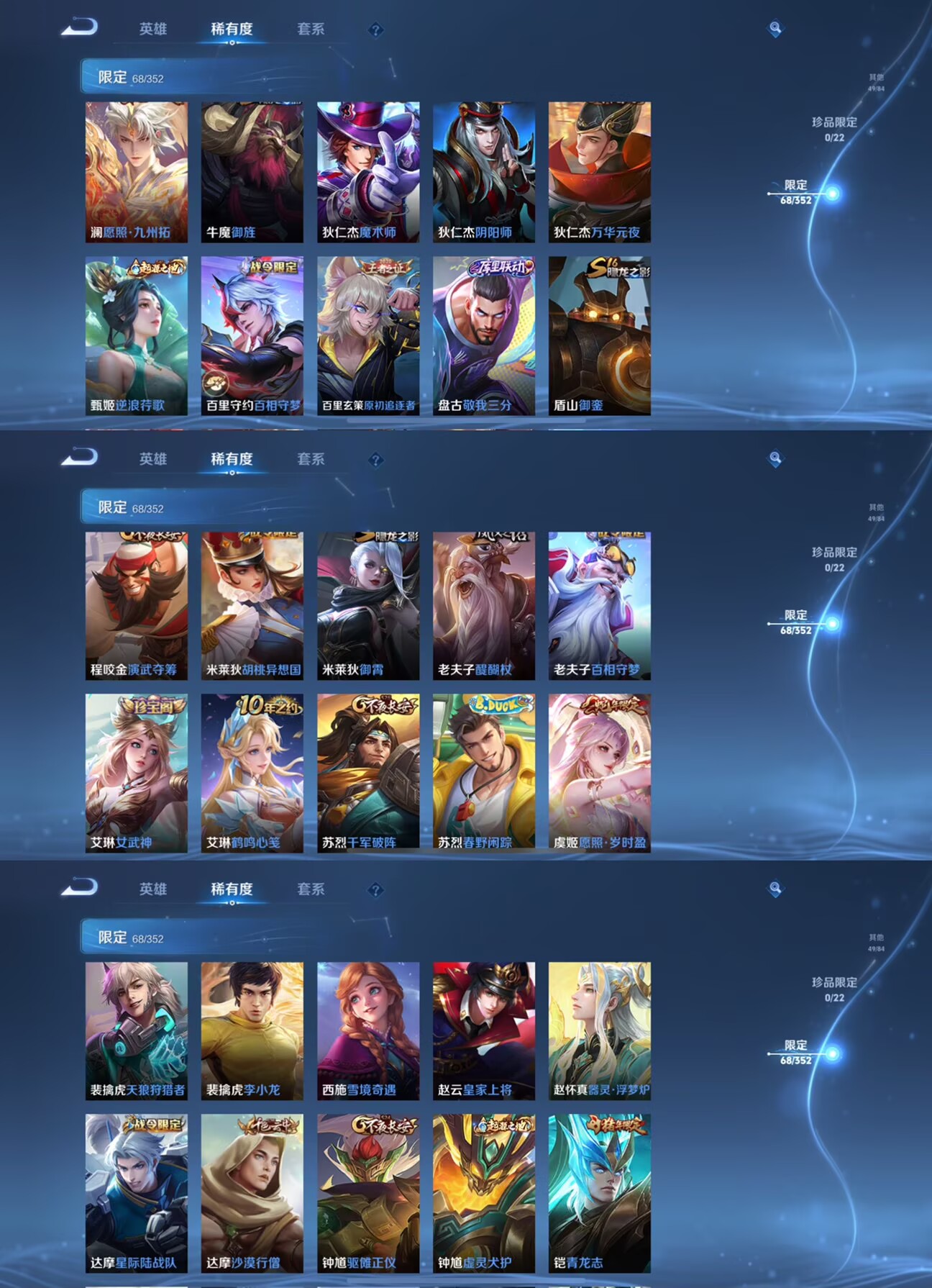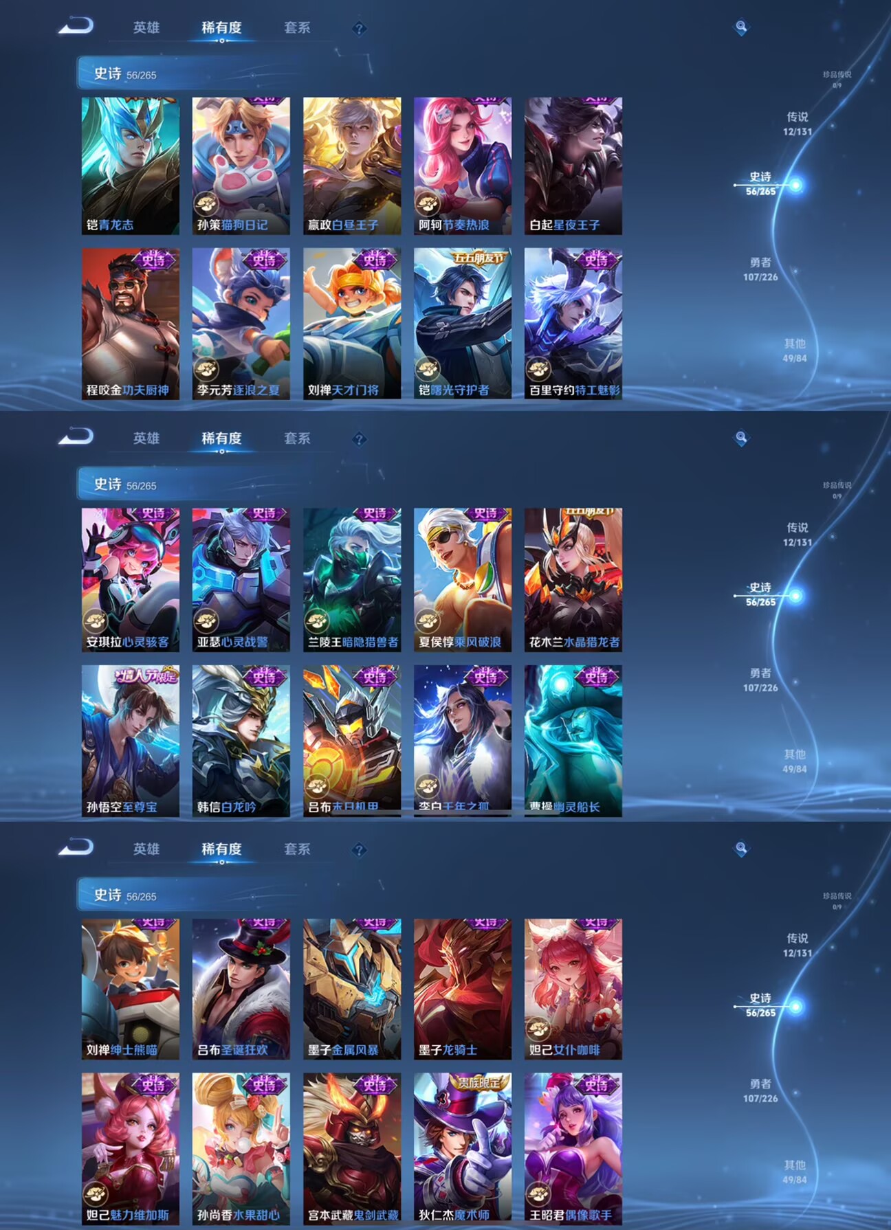 苹果Q-至尊星耀I-127英雄-225皮肤-1典藏-12传说-56史诗