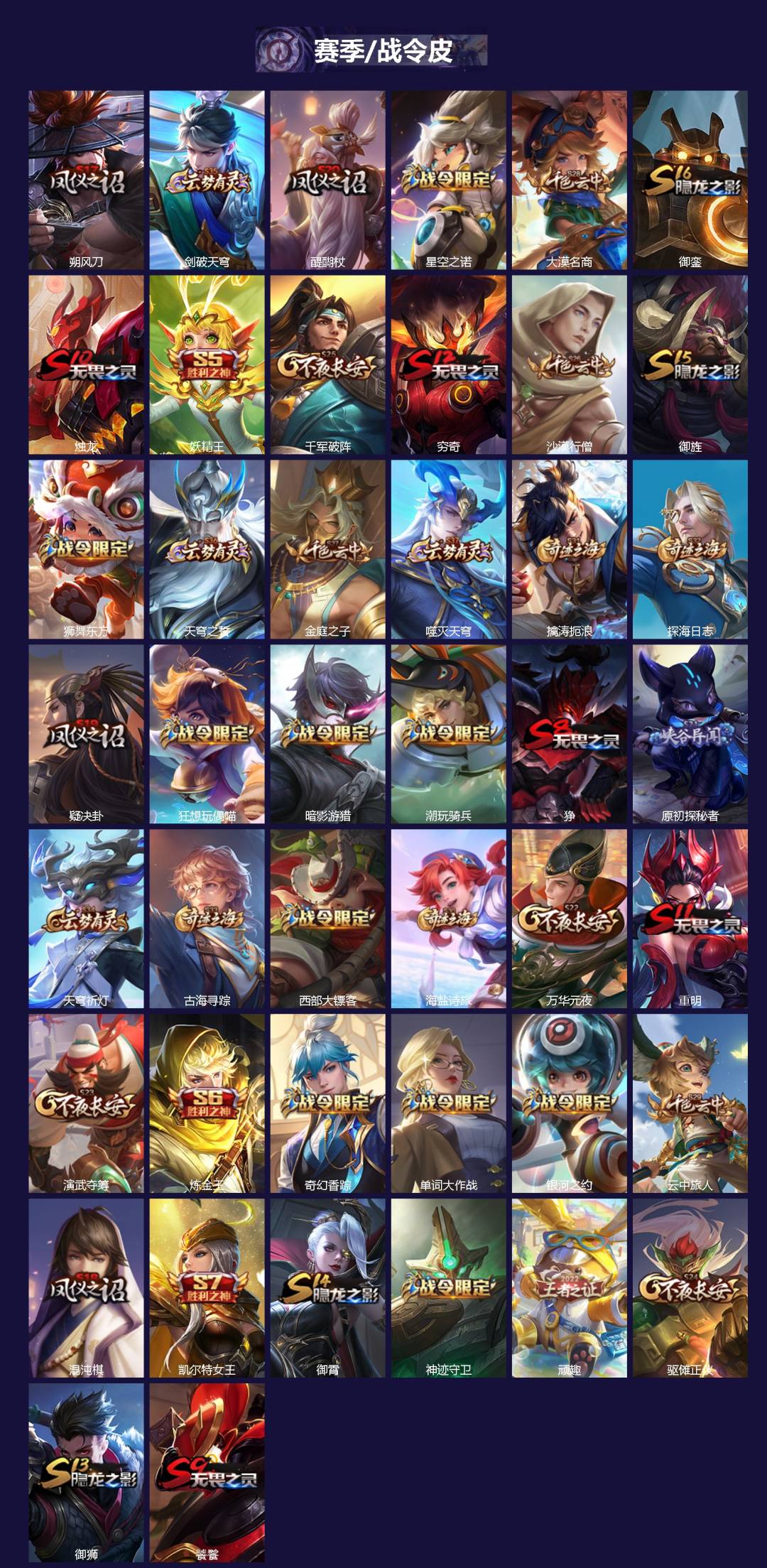 【赛季/战令皮】:噬灭天穹(s37),古海寻踪(s33),海盐诗旅(s30),擒涛扼浪(s31),