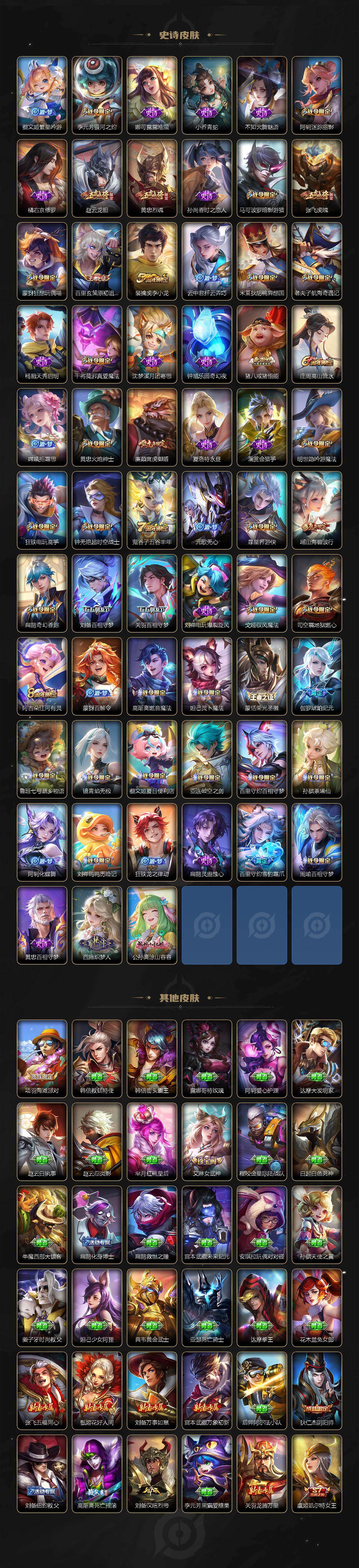 【英雄全皮】:刘禅全皮,刘邦全皮,钟馗全皮,太乙真人全皮,狂铁全皮,猪八戒全皮,戈娅全皮,空空儿全皮,影全皮