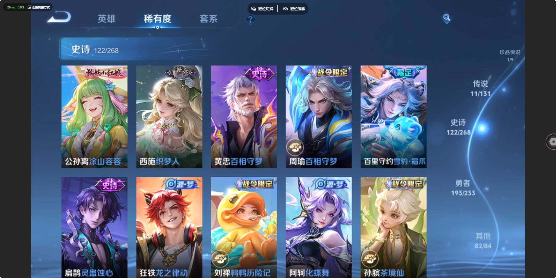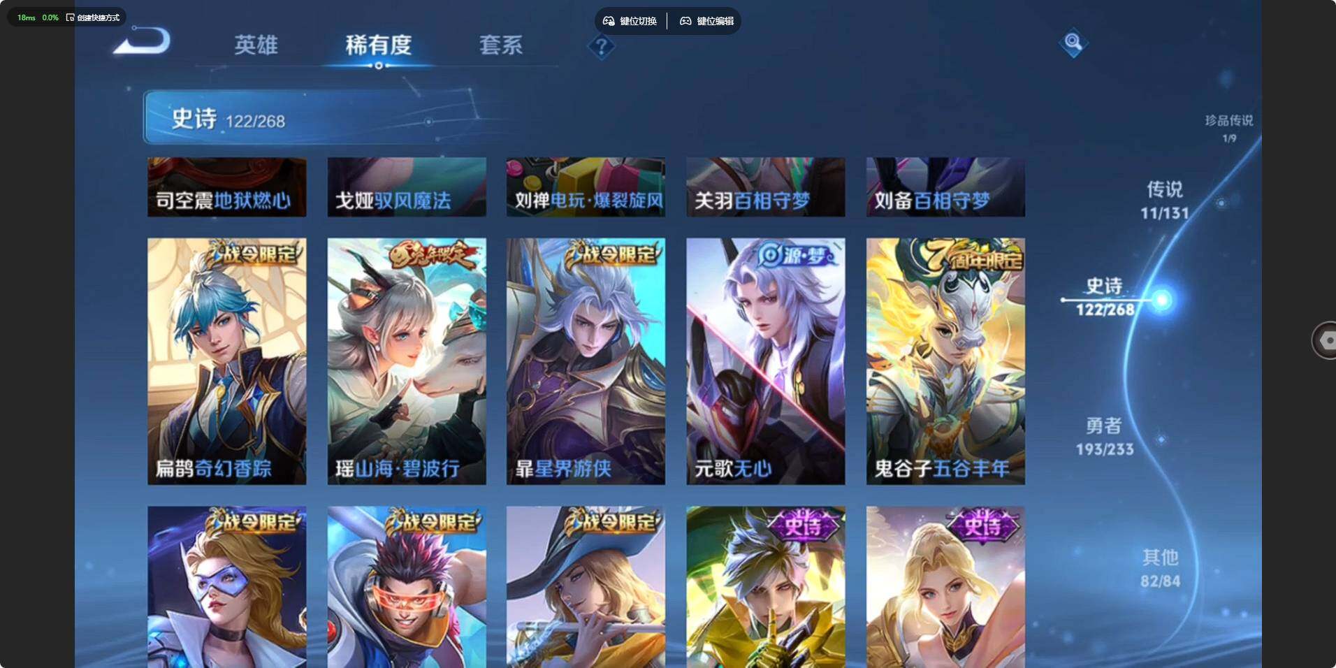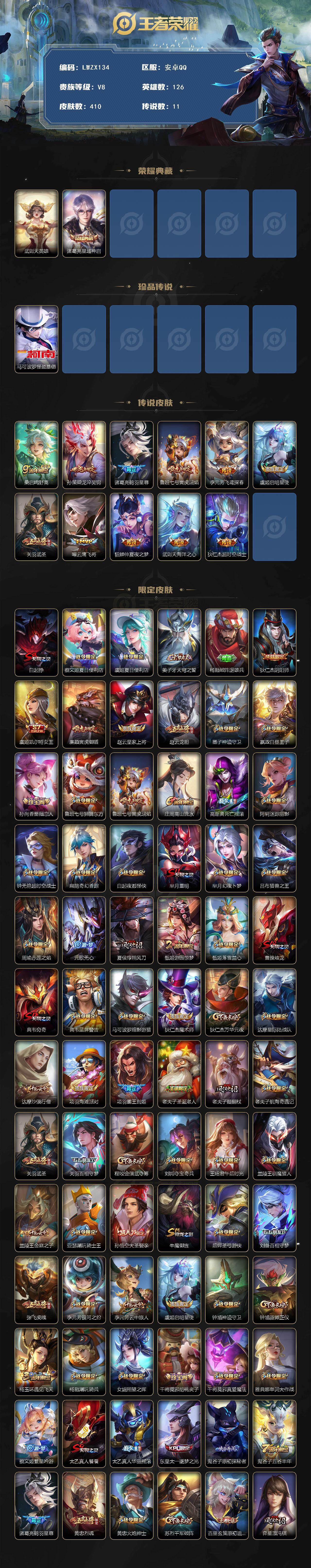 /【特价出售/店主推荐】安卓Q-V8-至尊星耀II段位-126英雄-410皮肤-1典藏皮肤-1典藏英雄-1珍品传说-11传说-120史诗