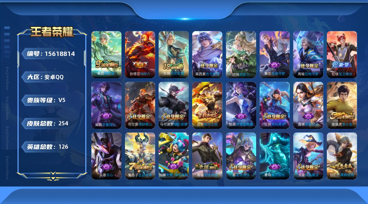 [15618814]V5 3传说 126英雄 254皮肤 可修改实名