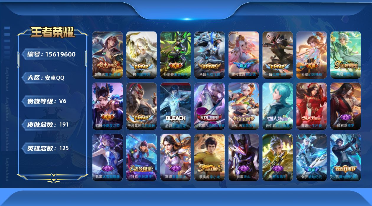 [15619600]V6 10传说 125英雄 191皮肤 可修改实名