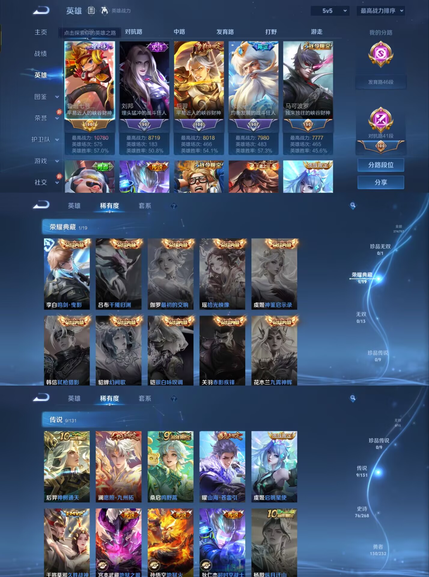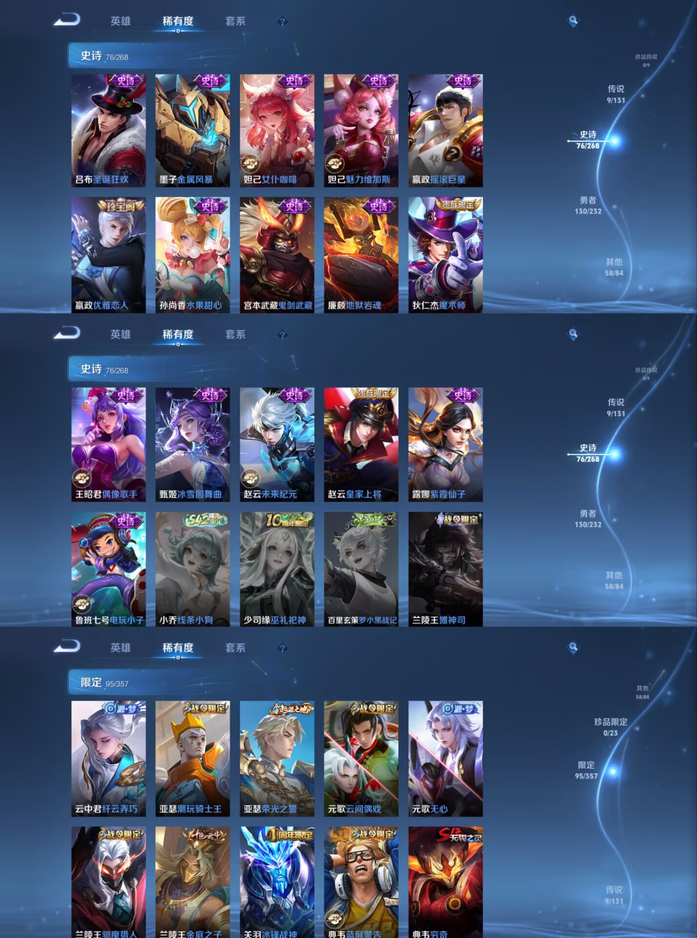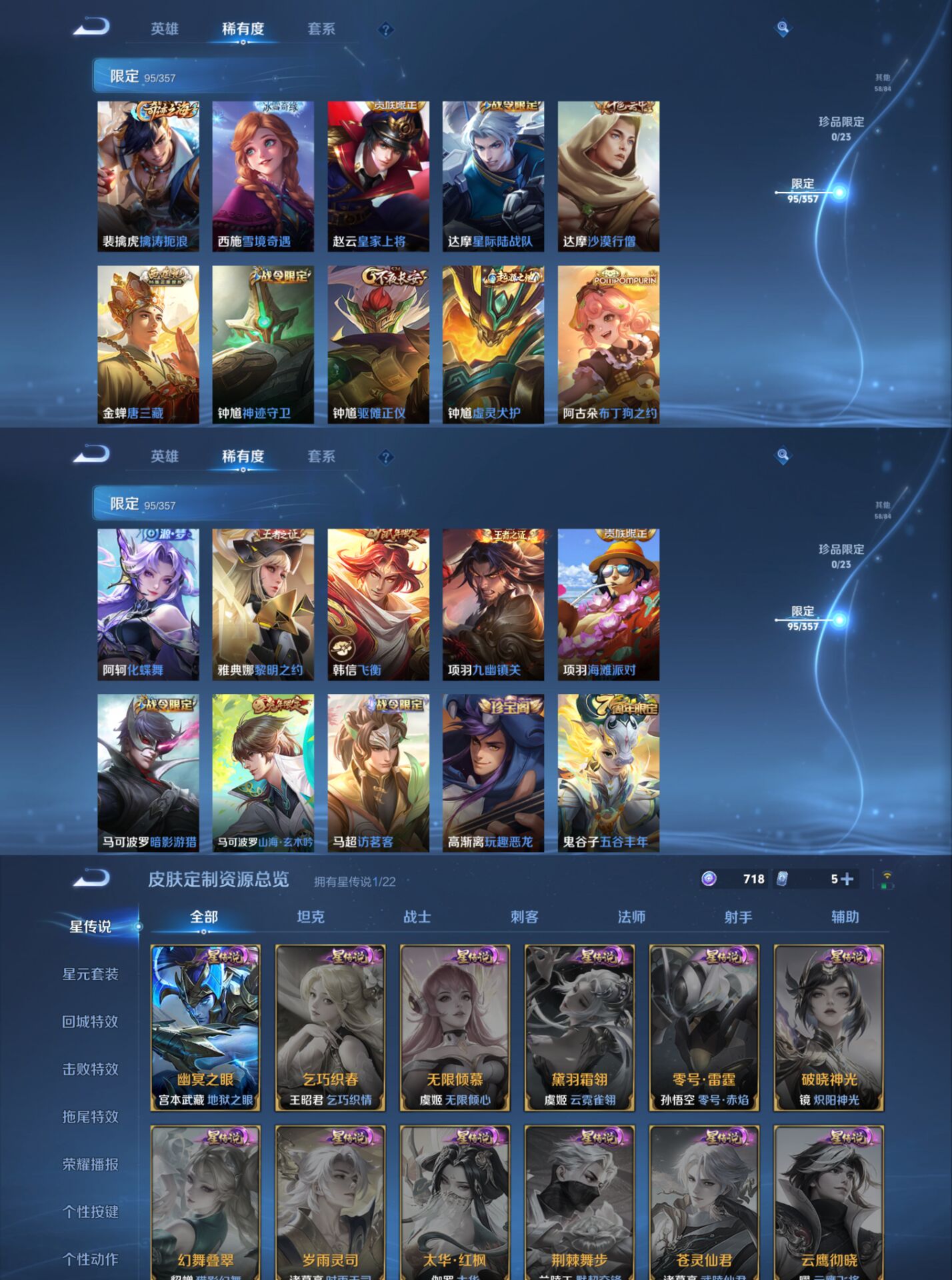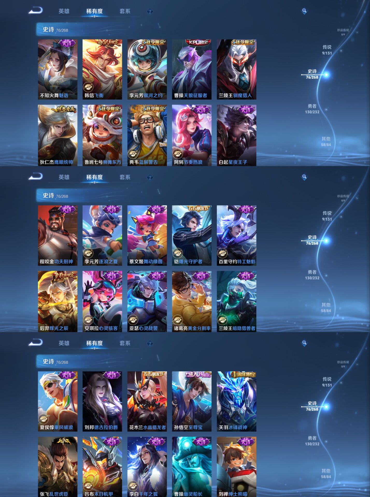 安卓Q-至尊星耀III-126英雄-274皮肤-1典藏-9传说-75史诗