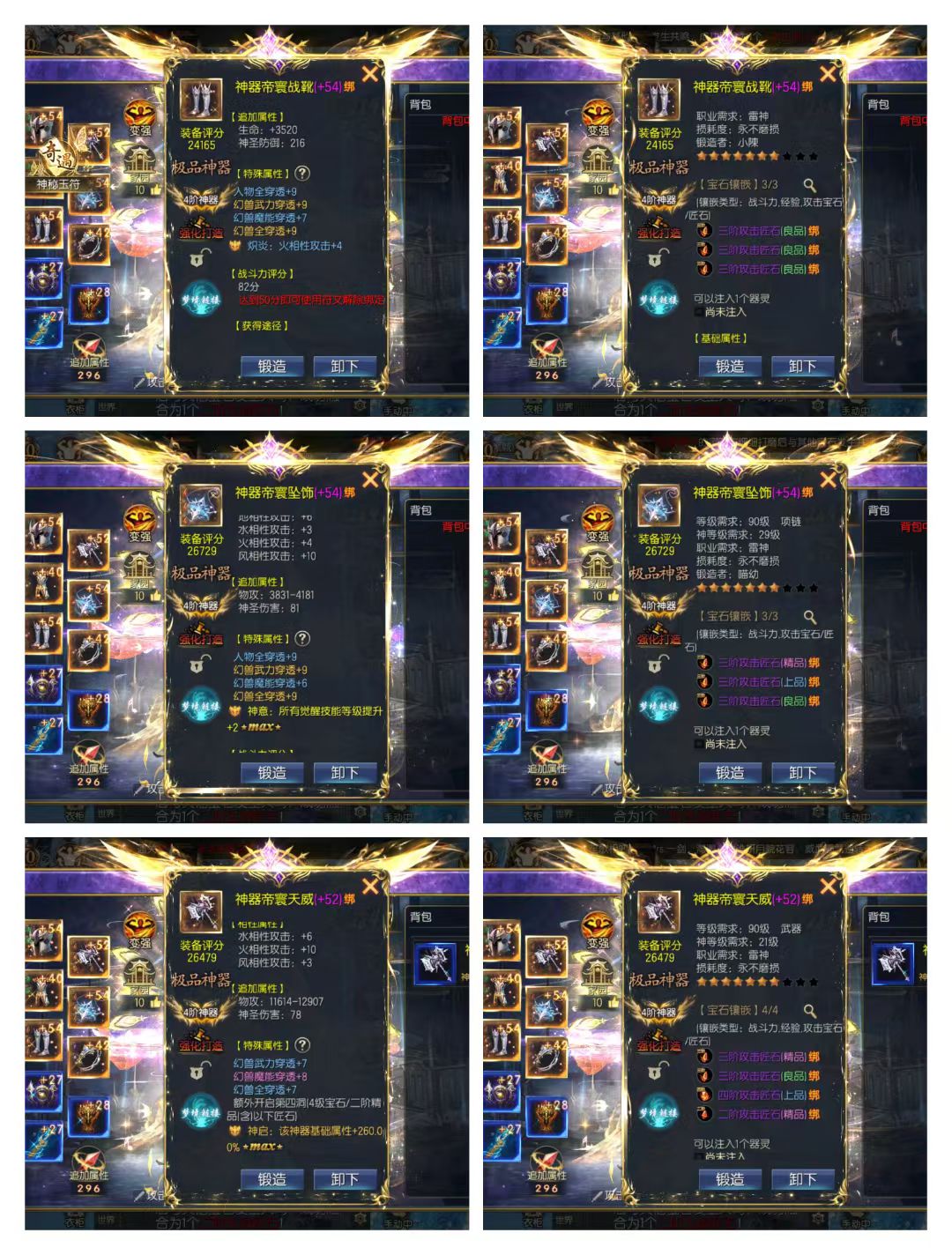 装备:神启260武器4洞,神意项链3洞,3洞鞋子,一套穿透装