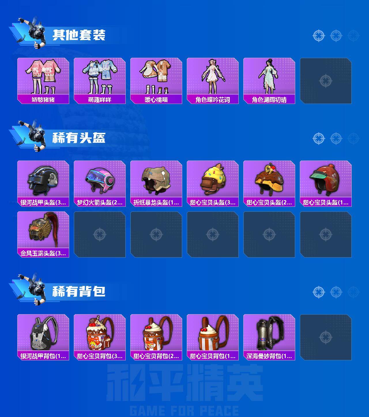 【粉色套装】:粉装-宝贝奶油派,粉装-天使彩虹糖,粉装-仲夏莫吉托,角色-烟云彩露,角色-女娲灵识,角色-绯穹魔姬