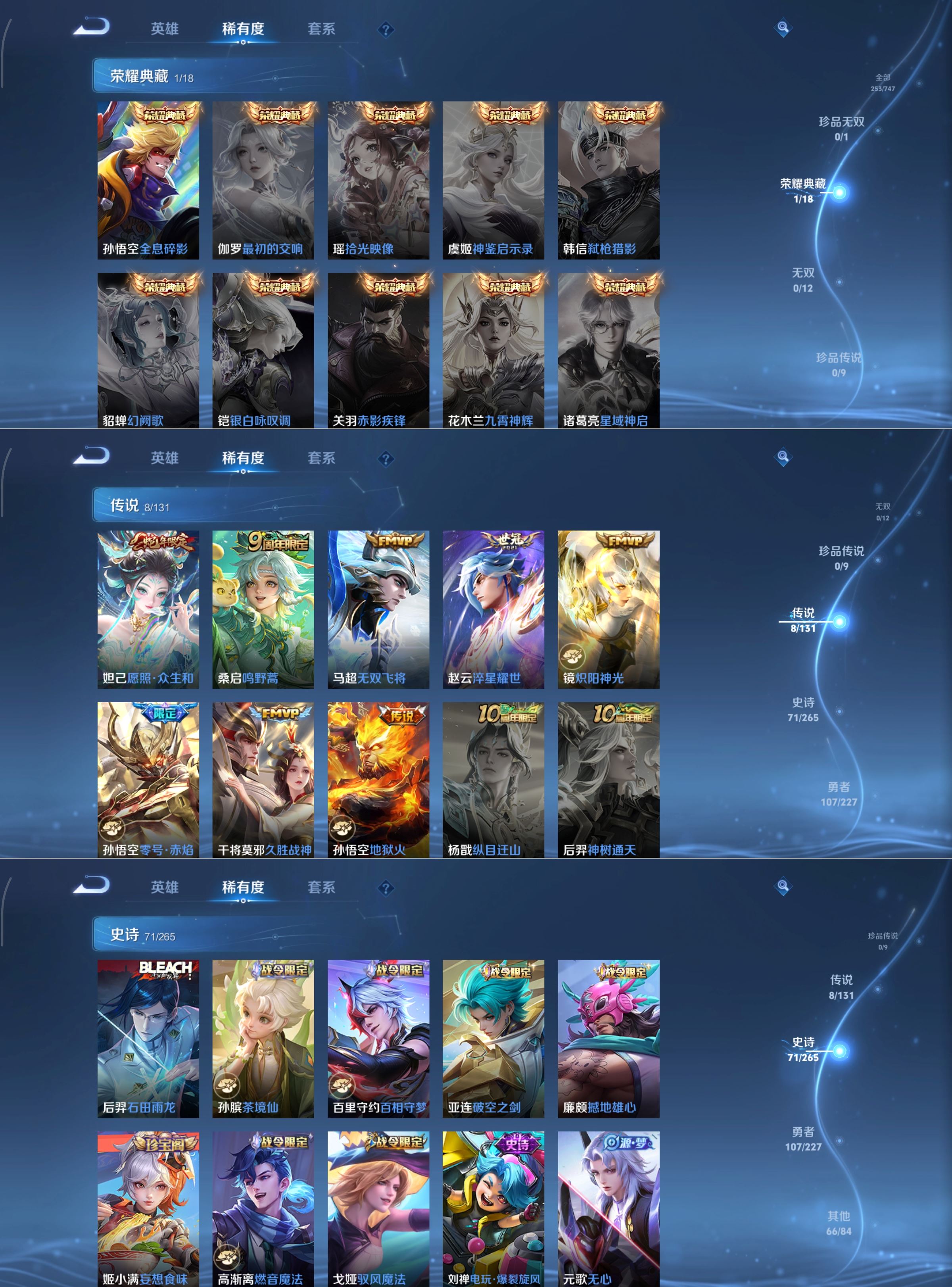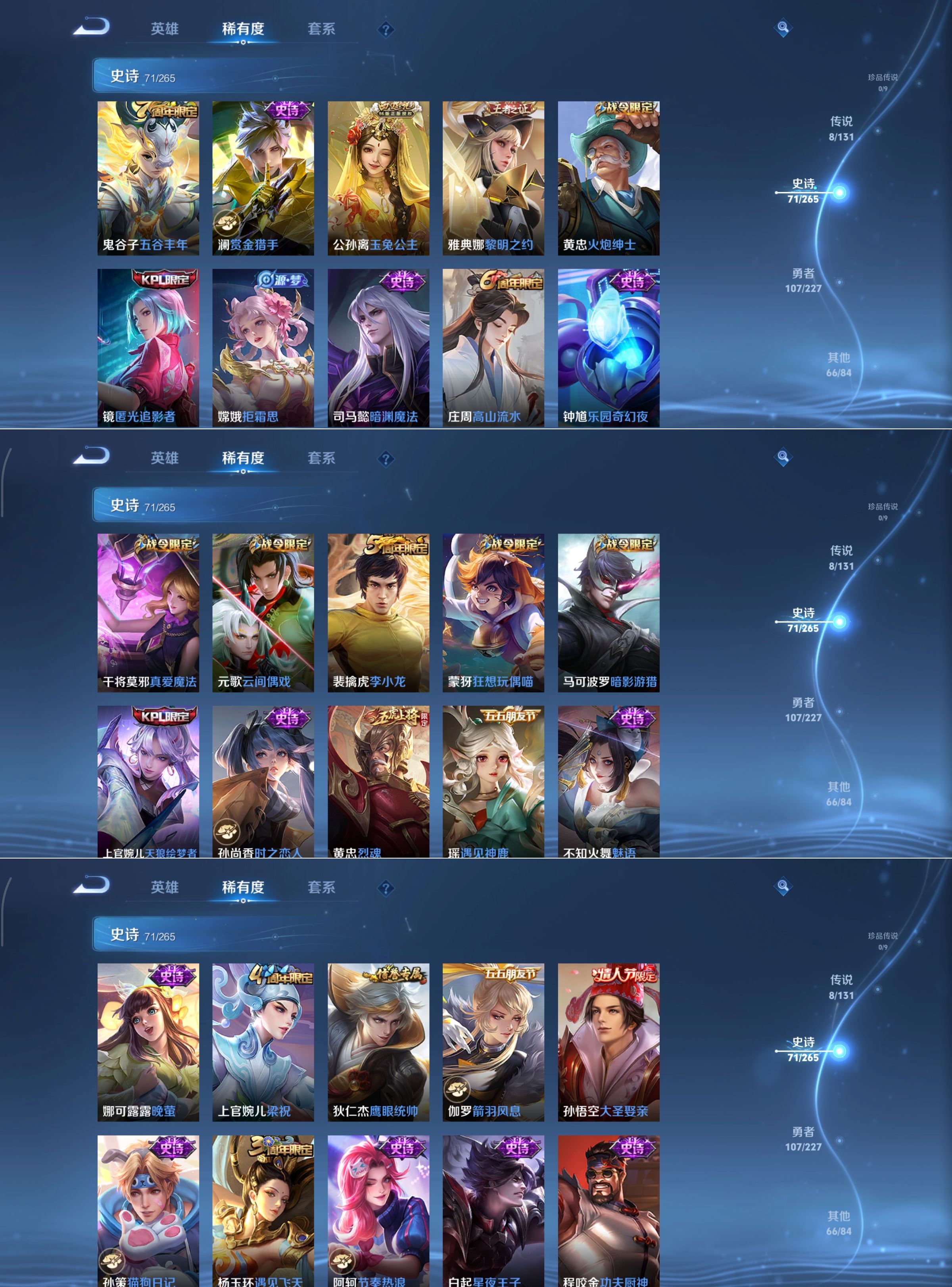 安卓Q-永恒钻石I-125英雄-253皮肤-1典藏-8传说-71史诗