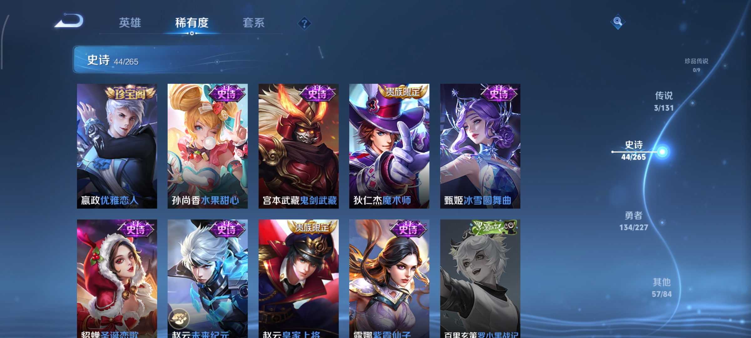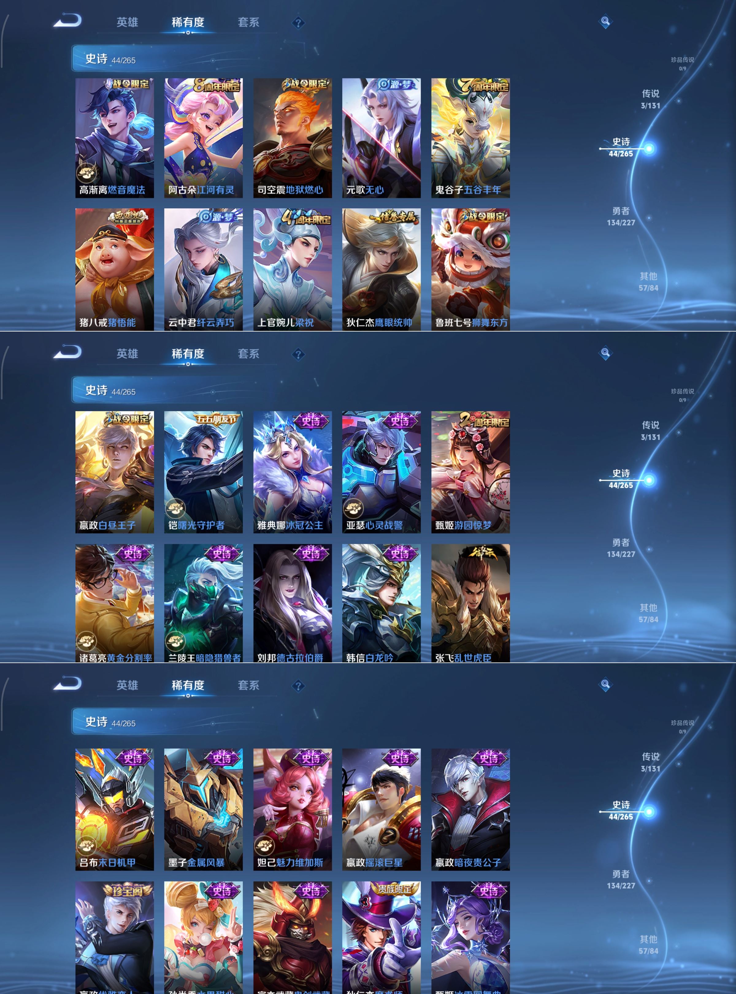 安卓Q-绝世王者-126英雄-239皮肤-1典藏-3传说-44史诗