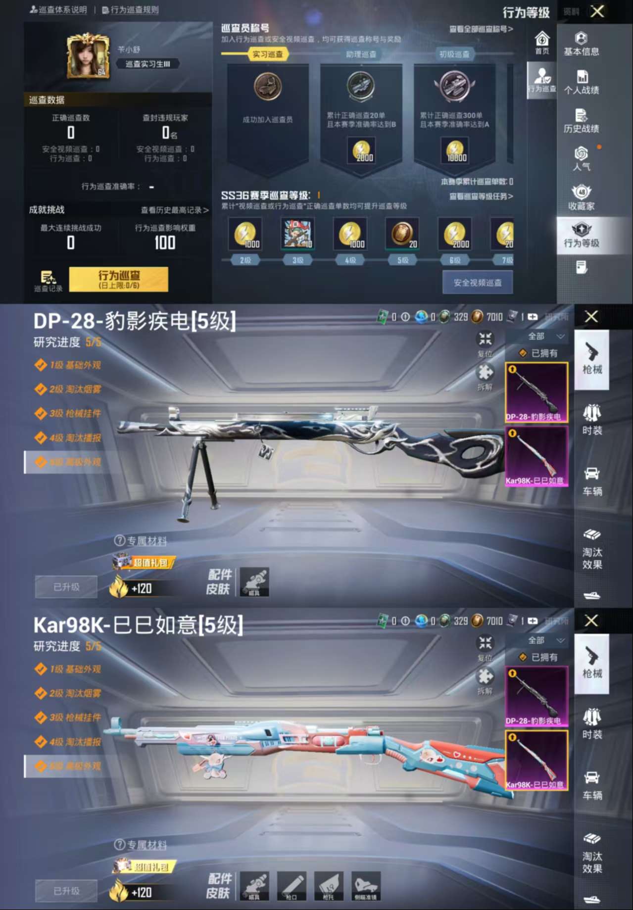 HM6410一体号-安卓Q区-2粉装2特效2飞行器 巡查实习生III-【可二次 地铁满天赋 2粉装 天使彩虹糖 月影灵韵 2特效枪 送王者52皮】-43288热力值-14王牌印记-135套装-136枪皮-星钻III-游戏64级 1太阳0违规 【优质套装】: 天使彩虹糖 月影灵韵 【特效枪等级】:Kar98K-巳巳如意(五级- Kar98K-巳巳如意) 【优质武器皮肤】: Kar98K-巳巳如意
