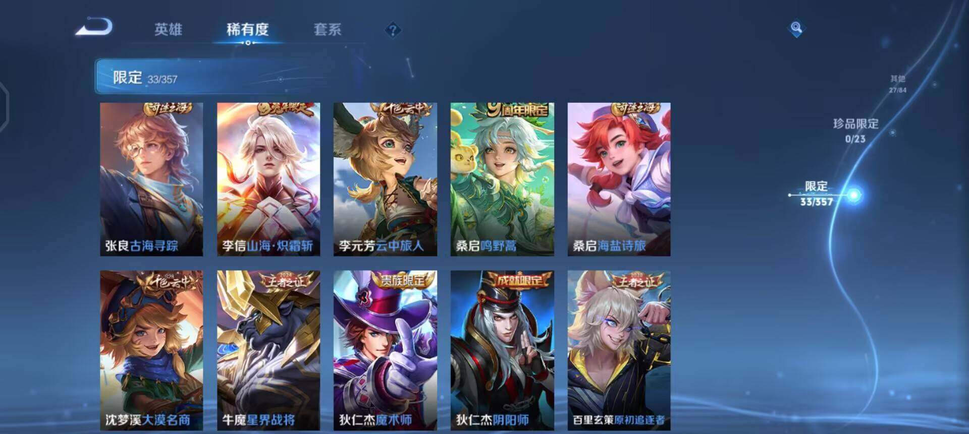 【传说皮肤】:云缨幻光神枪,桑启鸣野蒿,典韦战鼓燎原,孙悟空齐天大圣,李信山海炽霜斩,裴擒虎寅虎赤拳,宫本武藏地狱之眼