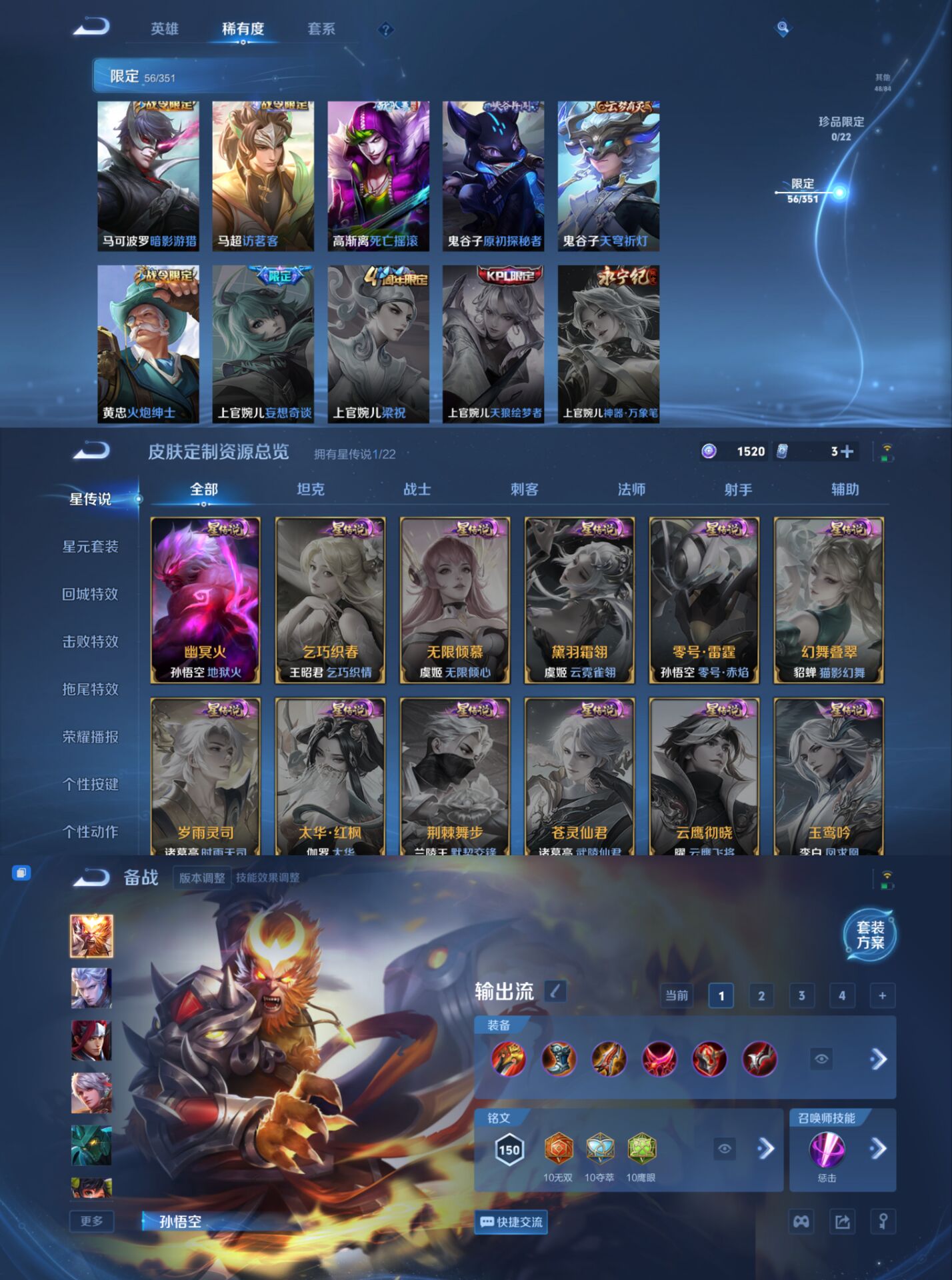 安卓Q-荣耀黄金I-125英雄-192皮肤-1典藏-6传说-41史诗