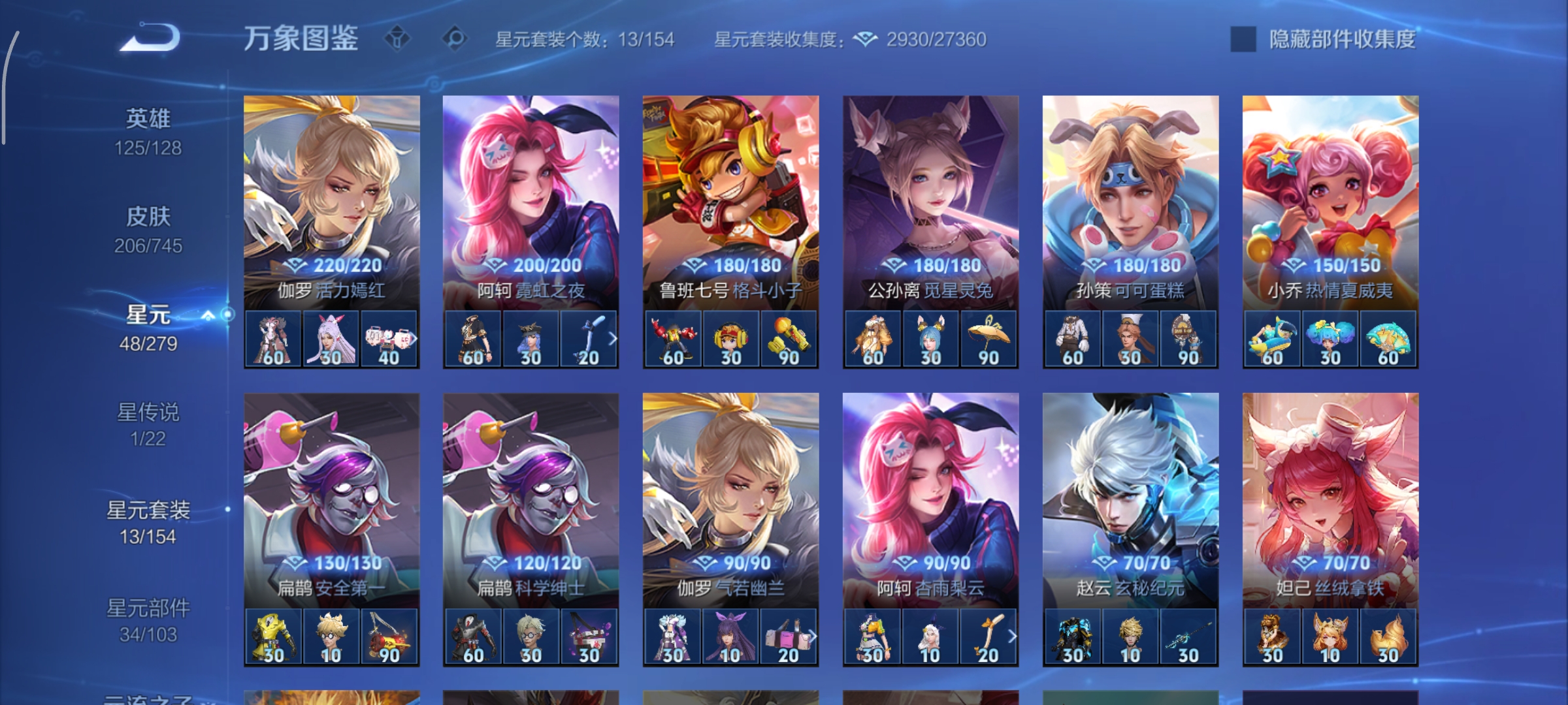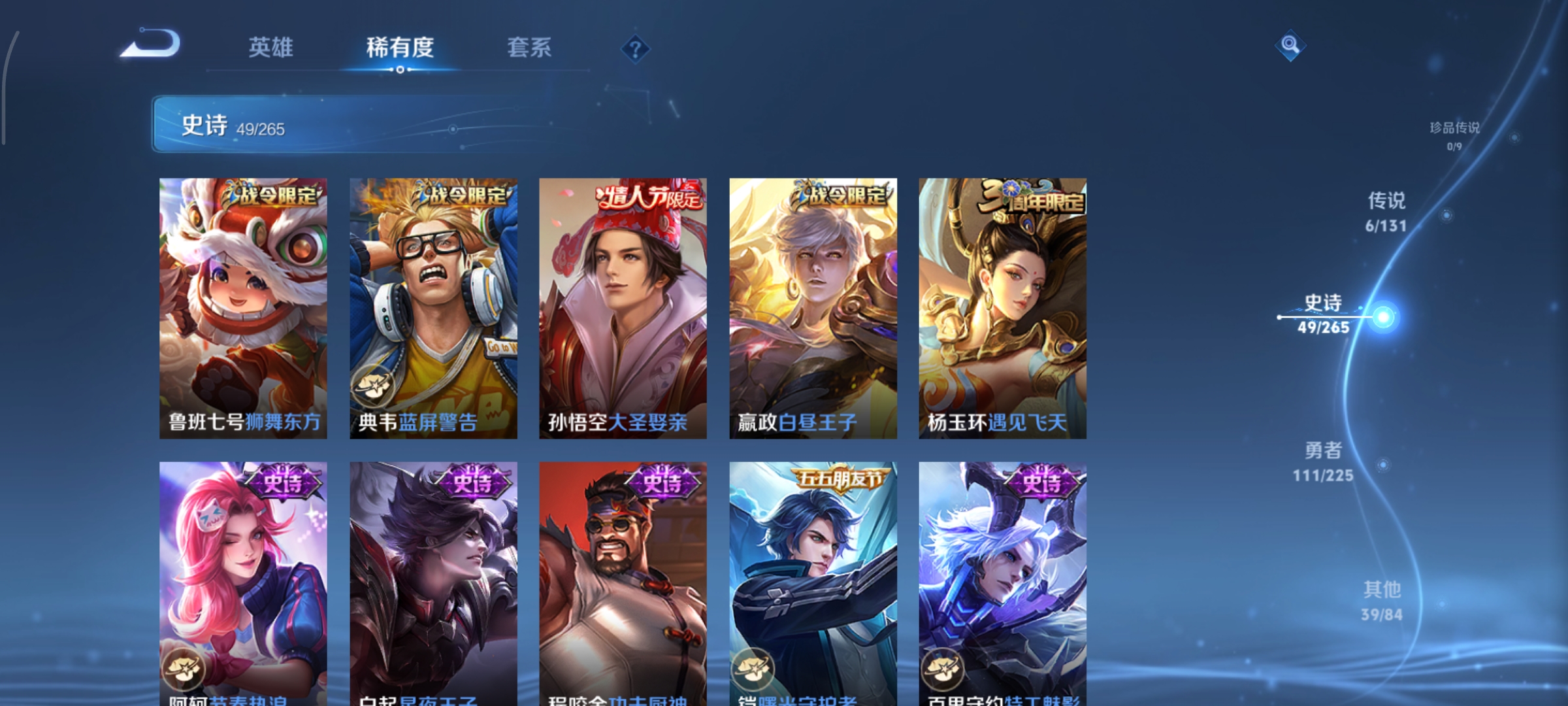 安卓Q-尊贵铂金IV-125英雄-206皮肤-1典藏-6传说-49史诗
